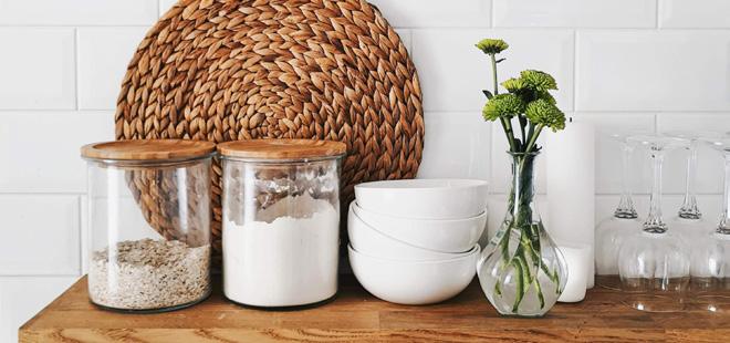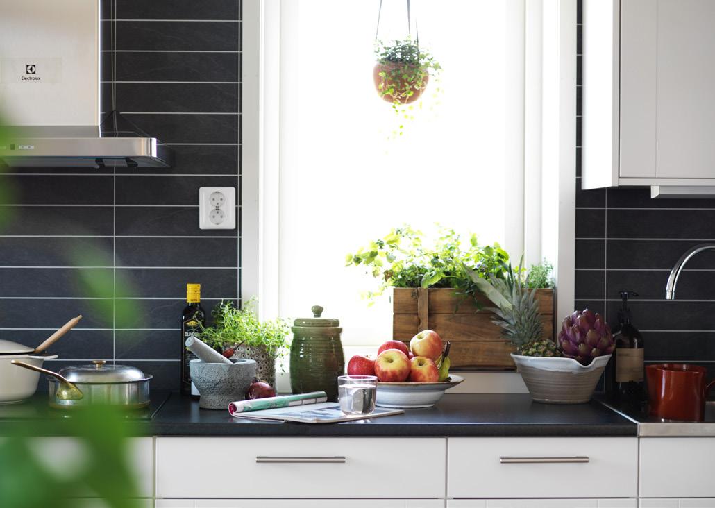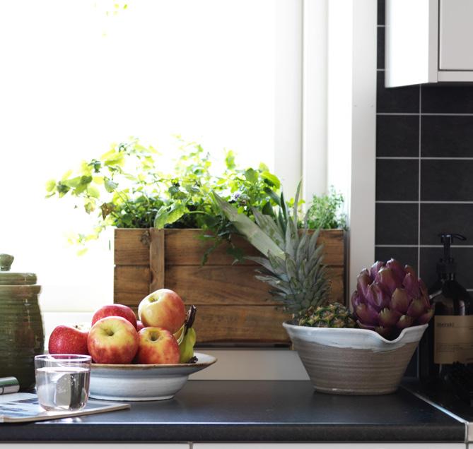 Rensa undan onödiga prylar som gör ytan stökig och gör plats för de riktigt fina detaljerna i köket. Kanske har du ett vackert fat att förvara frukt och grönsaker i?