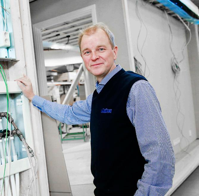 – Byggprocessen drar igång på flera håll samtidigt – golv, väggar och tak. De olika delarna monteras sedan till moduler vilket kortar ner produktionstiden. Det gör också att vi kan kontrollera och beräkna produktionstiden och vår leverans till kunden. Därefter går hantverkare in och kompletterar med att montera kök och badrum, dra el och förbereda VVS. Allt för att varje modul ska vara så färdig som möjligt när huset