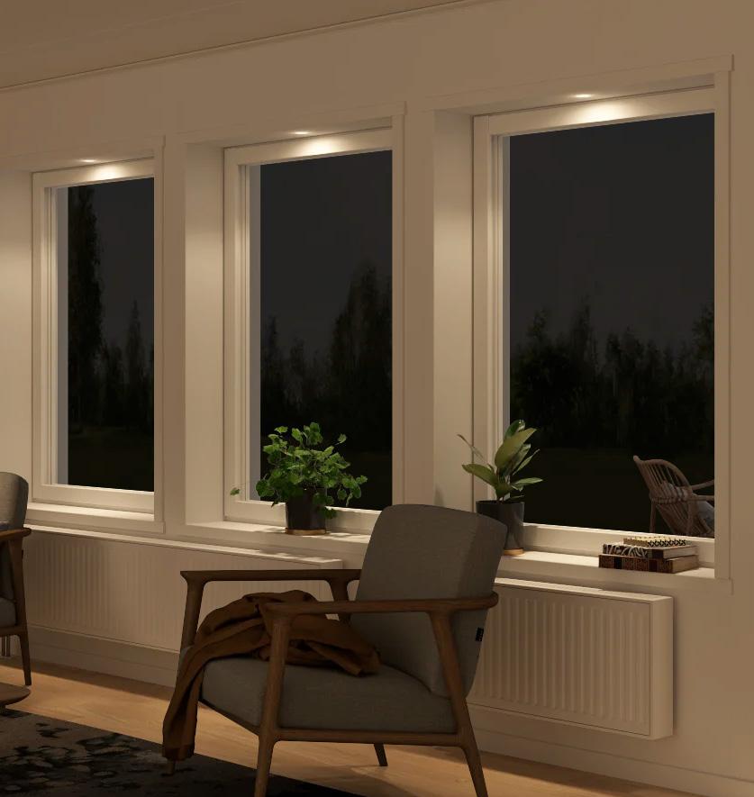 Välj dekorfönster och låga fönster. De släpper in så bra med ljus. Och spotlights i fönstersmyg, det känns lyxigt!