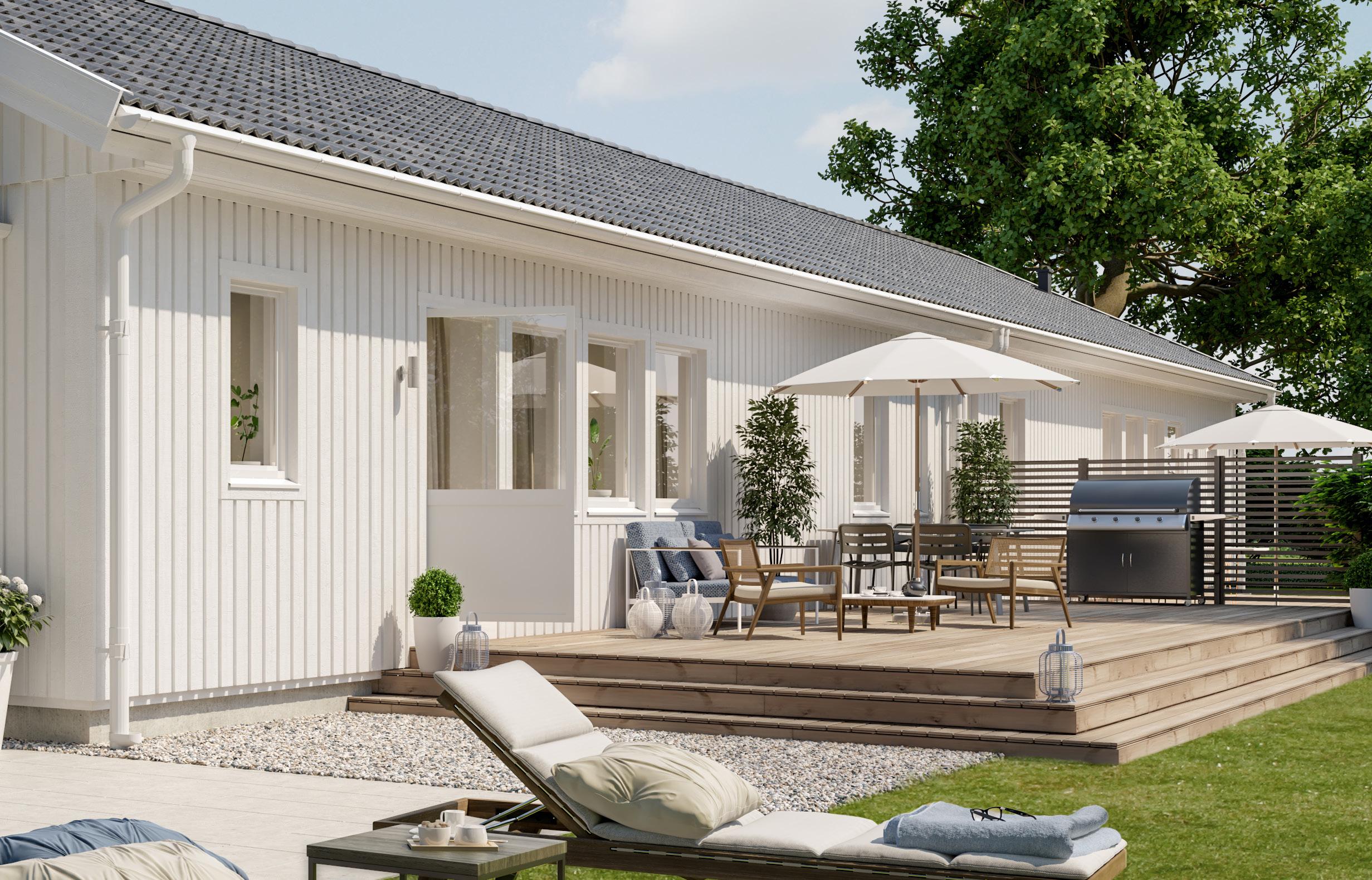 – I princip betalar du när huset är klart för inflyttning. Du riskerar inte att behöva betala in fyra eller fem delbetalningar utan att ha sett slutresultatet, säger Olov Granström, som menar att den ekonomiska oron i många fall kan stå i vägen för husdrömmen. – Vi har stor respekt för den oro många kan känna, och att det till och med kan vara ett hinder för många som är nyfikna på att bygga hus. Därför erbjuder vi marknadens bästa betalningsvillkor där du inte betalar ett öre förrän allt är godkänt och klart.