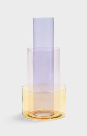 Flower arrangements are always a composition in all dimensions. This glass vase allows you to use different lengths of flowers to create your composition. A small bouquet can go in the lower and middle sections, while a larger bouquet can be distributed over all the rings. By using transparent colours, beautiful overlays appear, and colours start to mix. The water levels can be adjusted playfully to suit the composition and the needs of each ring of flowers. A true colour statement that refers to the steps in amphitheatres, the vase will have a colourful yet subtle presence that looks stunning even without flowers.