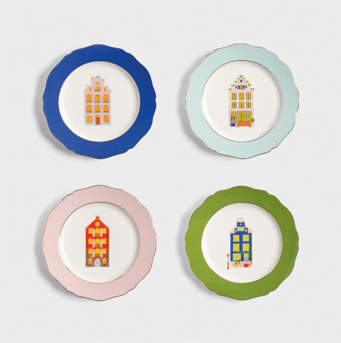 Plate canal house large set of 4