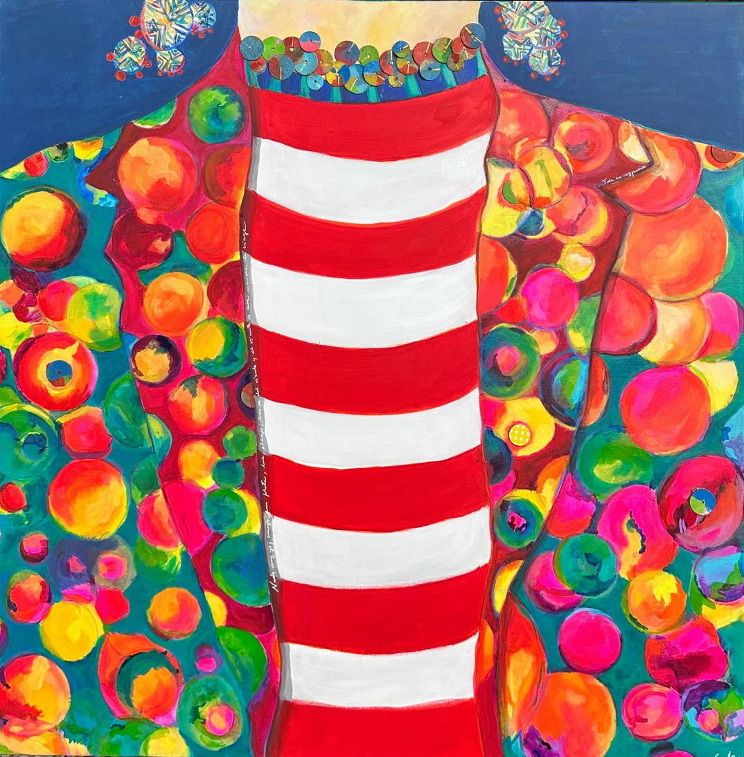 He titulado la serie Trátame Suavemente, un homenaje a mis orígenes y memorias. Este conjunto de obras se convierte en un espacio lúdico y reflexivo, donde cada símbolo, forma, trazo, personaje y color recrean fragmentos de mi historia. A través de estas piezas, ofrezco una visión íntima de las inquietudes que han surgido en mi camino, enriquecido por mis experiencias de vida en Bolivia, México, El Salvador, Estados Unidos y Guatemala.