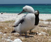 top: A Brown-face Boobie and its chick on Porpoise Cay, Wreck Reefs. All expedition photography by Xanthe Rivett
