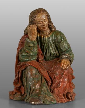 Bambin Gesù, scultura in legno policromo poggiante su base a finta roccia, Genova sec.XVIII h.cm.38