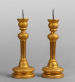 998 Coppia di candelieri in argento, sec.XIX h.cm.25, gr.410 (difetti)