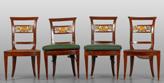 1021 Sei sedie Luigi XVI in noce, schienale a scudo, gambe scanalate Genova II metà sec.XVIII