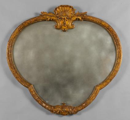 Specchiera in legno intagliato e dorato, Piemonte sec.XVIII (gravi mancanze) cm.85x h.138