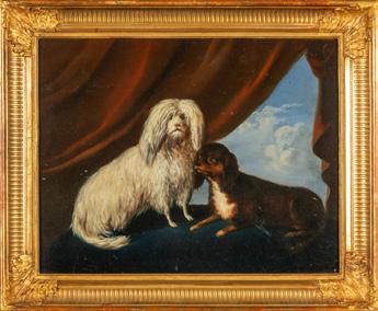 “Fanciulli con animali” coppia di grisailles, I metà sec.XIX cm. 104x65
