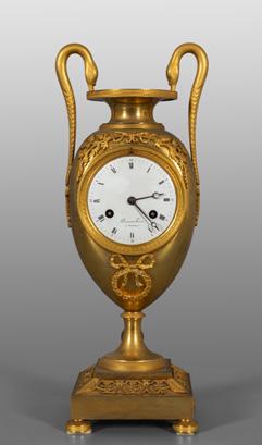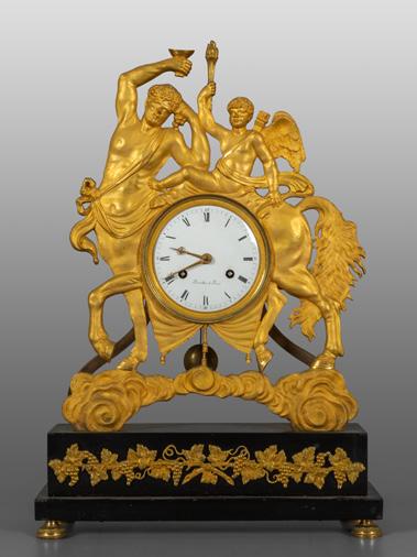 Orologio Restaurazione in bronzo brunito e dorato, Francia sec.XIX cm. 46x19 h. 68