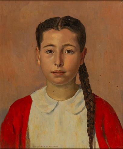 Untitled (Girl's face) oil on cardboard 17,71x14,17 in signed lower center
