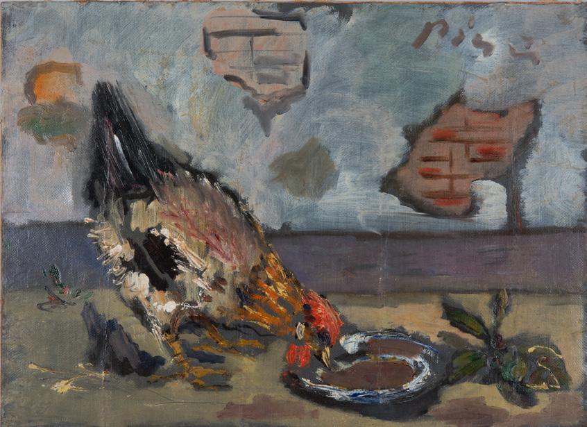 Gallina (inizio anni ‘40) olio su carta intelata cm 50x66,8 firmato in alto a destra sul retro: etichetta della Piccola Galleria, Venezia Archivio dell'Associazione per Filippo de Pisis n.05672