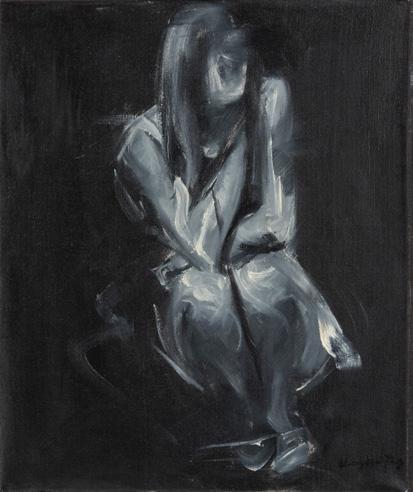 Signora in nero A. XVI (1938) on the reverse sketch of male figure, charcoal drawing oil on cardboard 39,37x27,55 in signed and dated lower left provenance: Galleria Gavioli, Milan