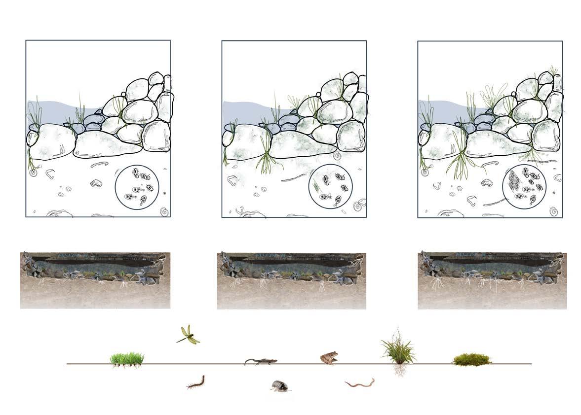 Underground water network: existing network must be considered and designed around. Water already present on site creates opportunities to engage with water story (+) (-)