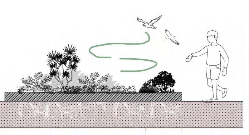 More native tree be introduce to enrich the flora layers and support bird habitat.
