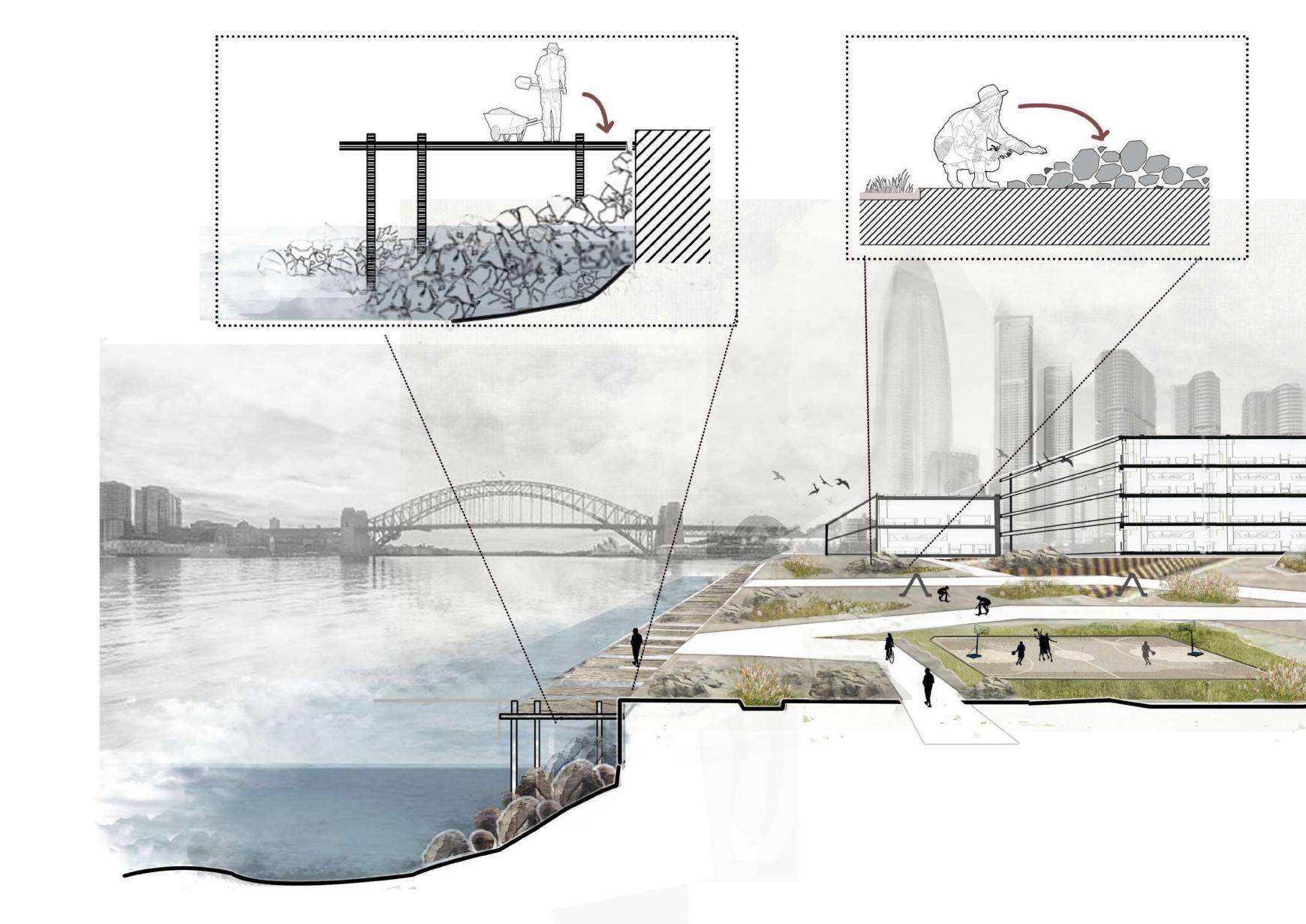The selected site aim to become one of the important nodes in White Bay that as a catalyst,contributing to activating and bring attraction to the whole Bay West Precinct.