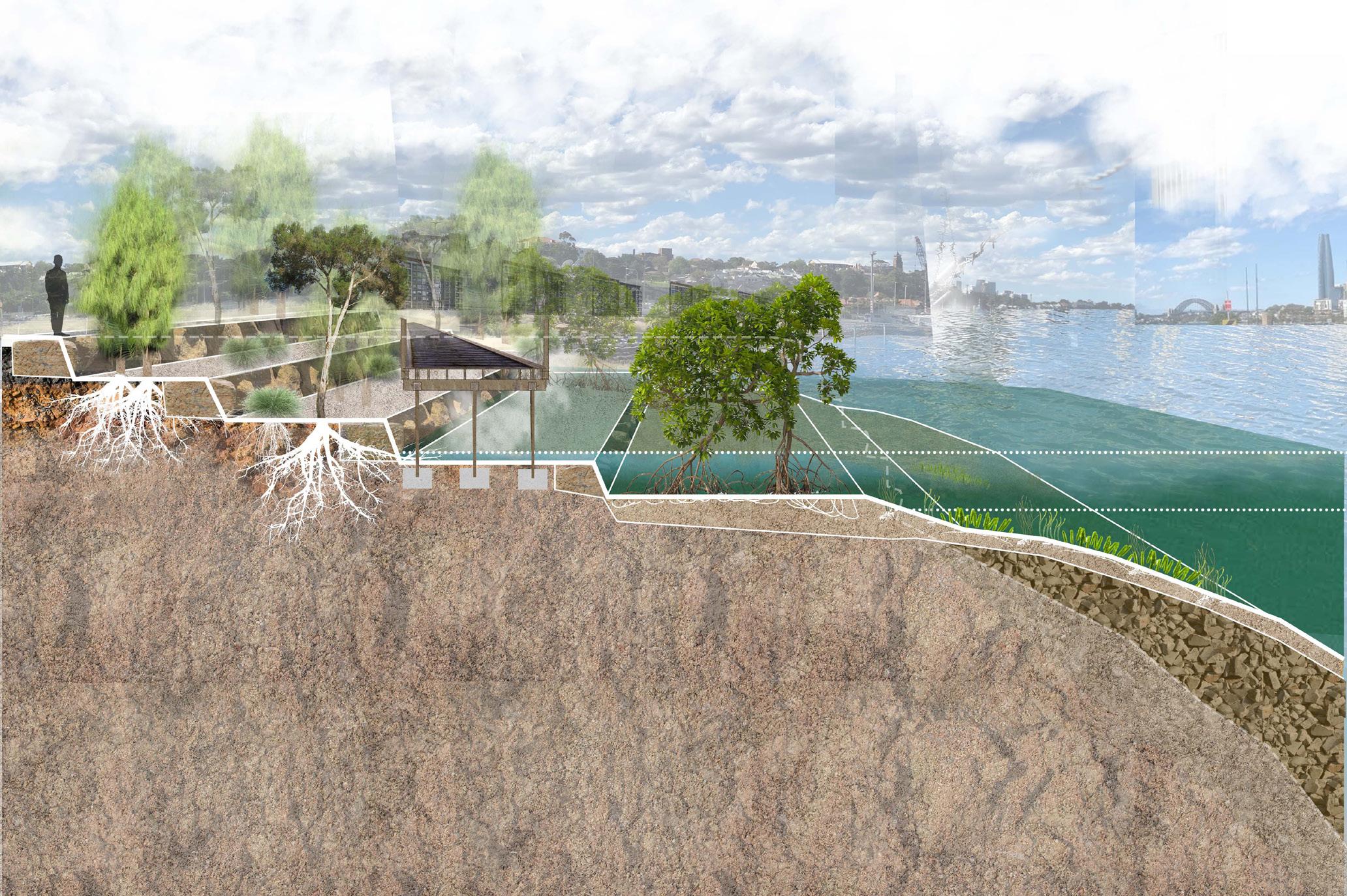 Sydney Metro ‘The Bays Station’ VENM Wetland Edge White Bay NCIE Campus Terraced Intertidal Edge