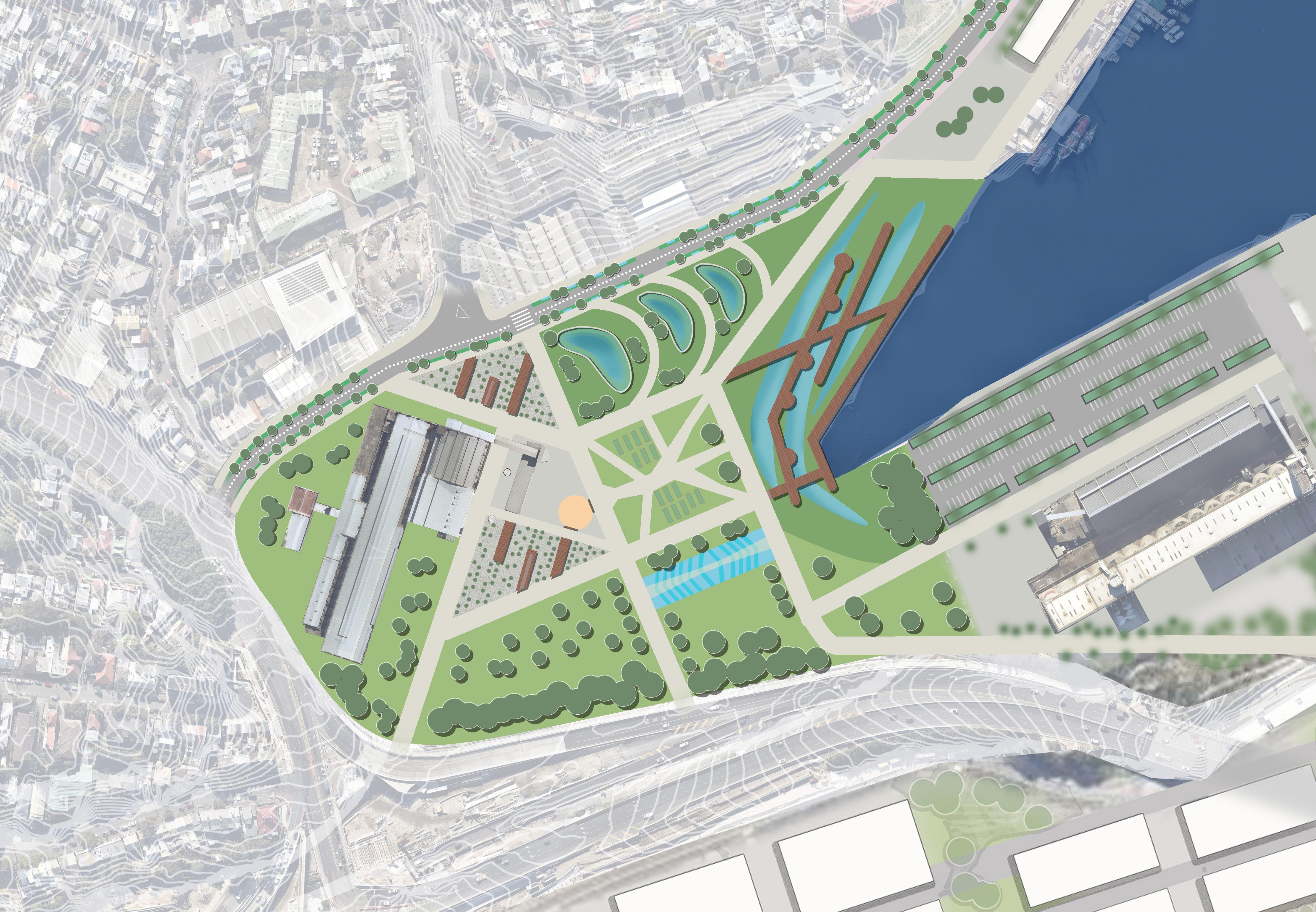 Robert Green Streets 2. Power Station Forecourt Garden 3. Constructed Wetlands 4. Water Treatment Centre 5. Metro Station 6. Urban Gardens 7. Harbour View Lawn 8. Water Play 9. Outdoor Meeting Place 10. Viewing Platforms 11. Boardwalk Promenade