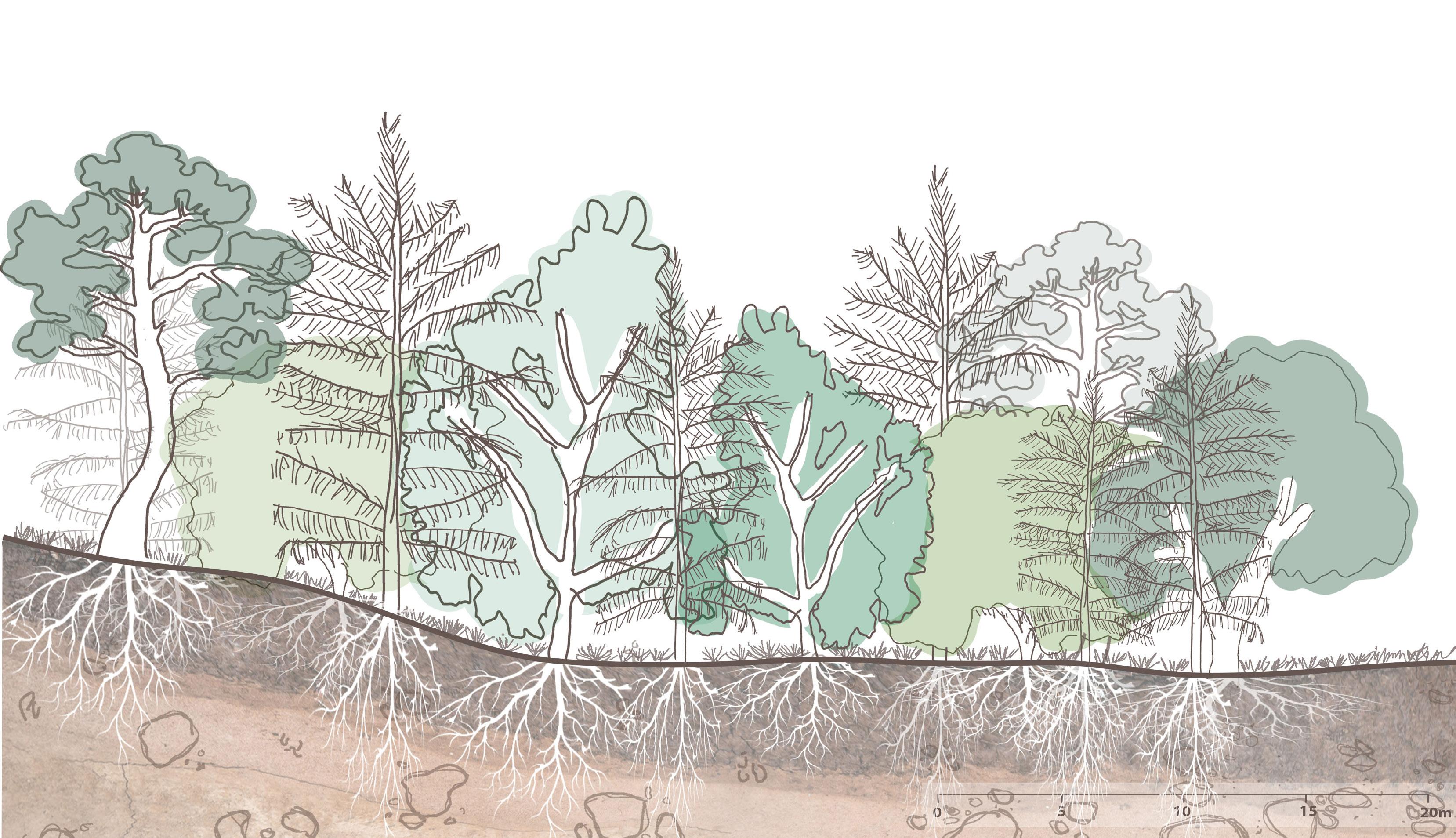 Restore ecologies on site through increasing canopy cover and rewilded areas by 60%