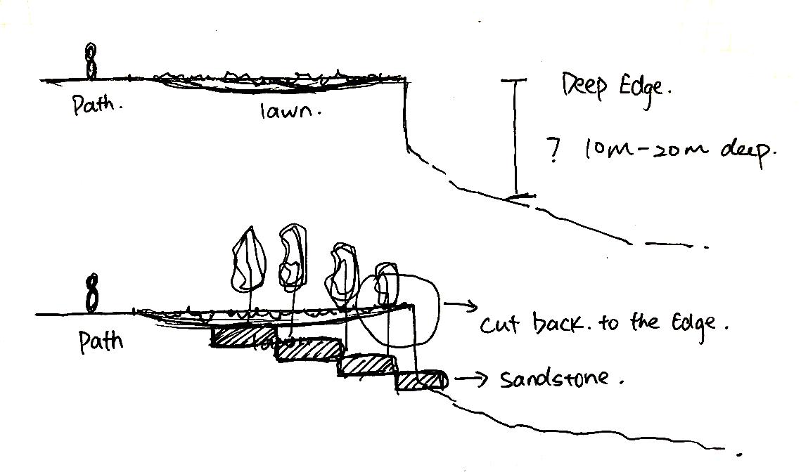 Make full reuse of the site potential of local materials to renew the sandstone edge.