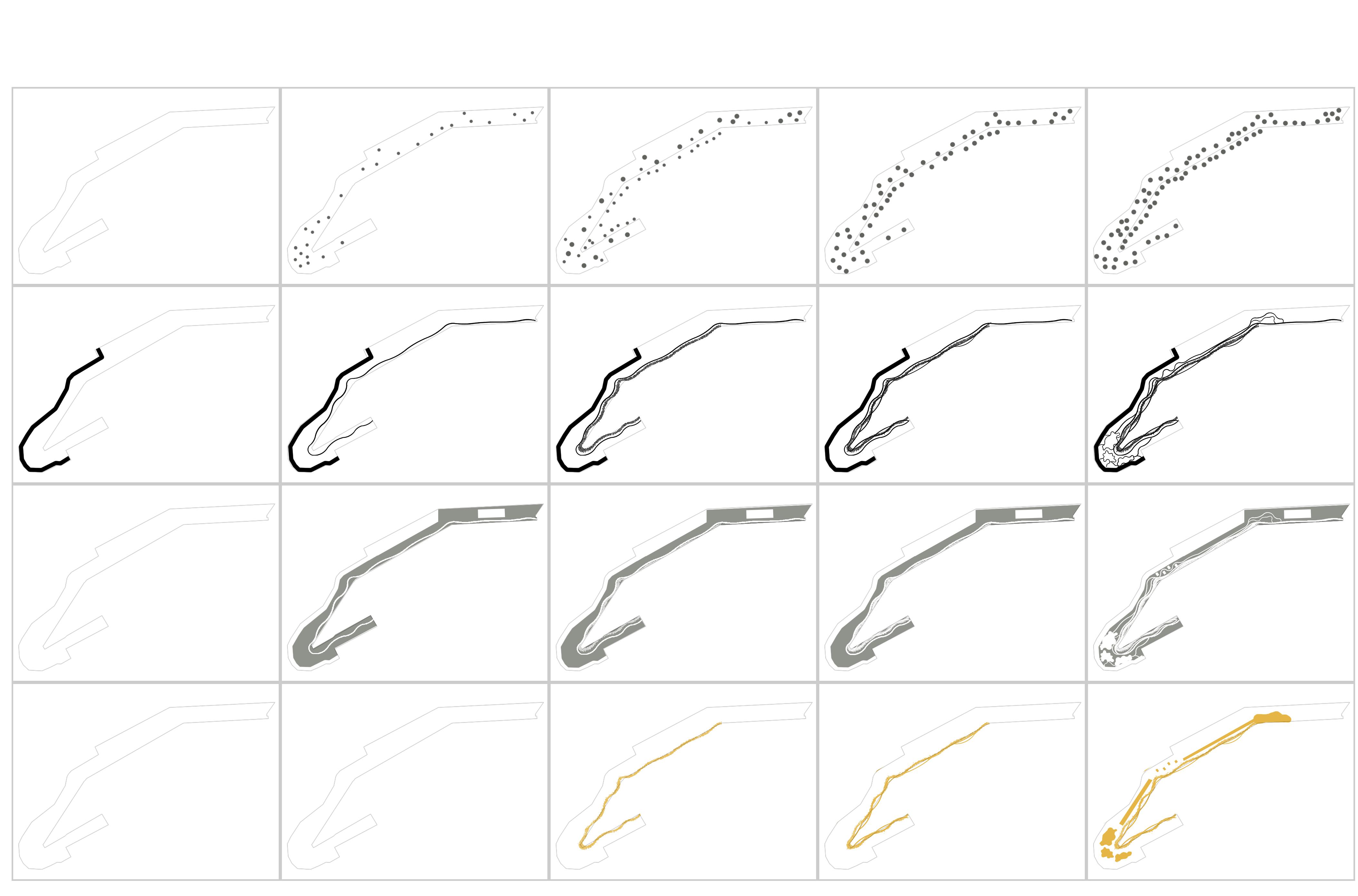 The terrain of the industrial brown eld is basically at, and the most si ni cant spatial element is the lar e industrial architectural herita e.