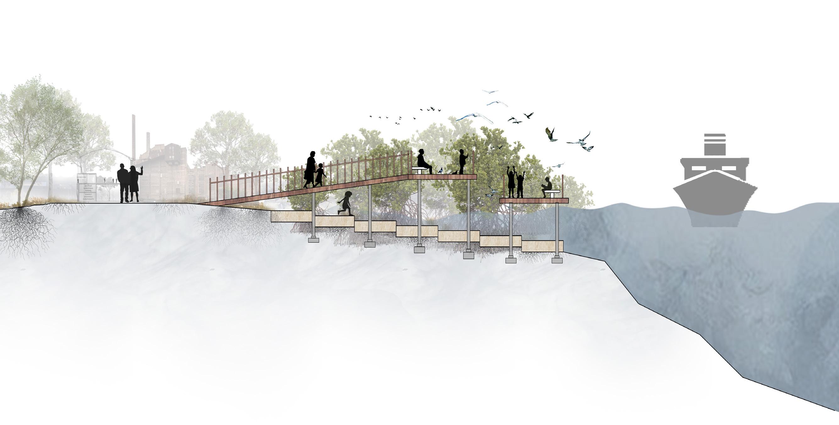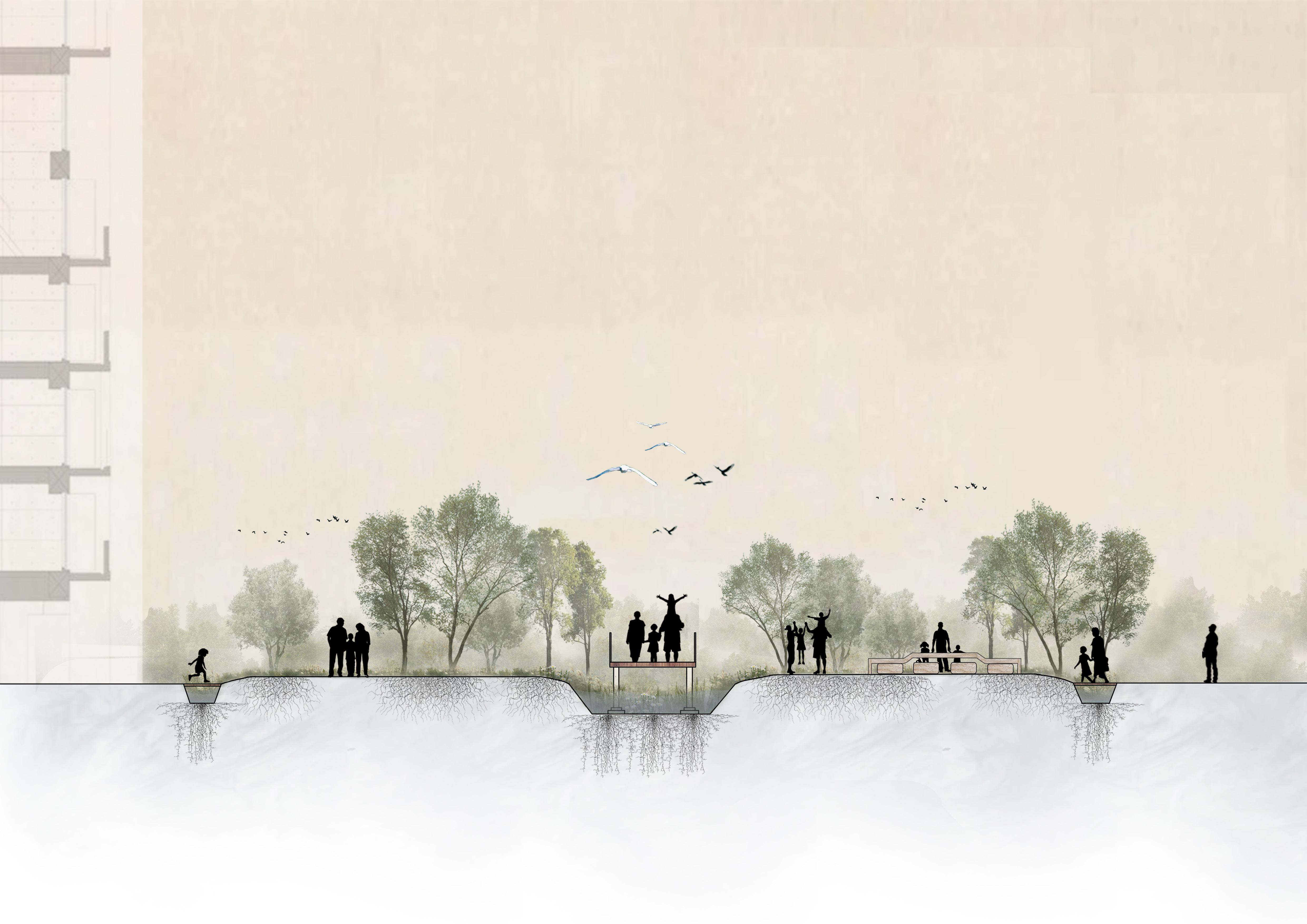 I set my sights on the working harbour area of the bays, aiming to build it into a resilient urban children’s ecolo ical space and ma e it more diversi ed, so as to reduce carbon emissions, cope with the e treme