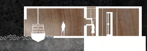 The seagrass lab slices through the coal loader and majority of the building is underground. Light enters from above and from the open access to the seawall on the west side. The segrass lab features an entry vestibule, flexible working space for recieving, sorting and nurturing seagrass, lab space as well as space for indoor and outdoor tanks.
