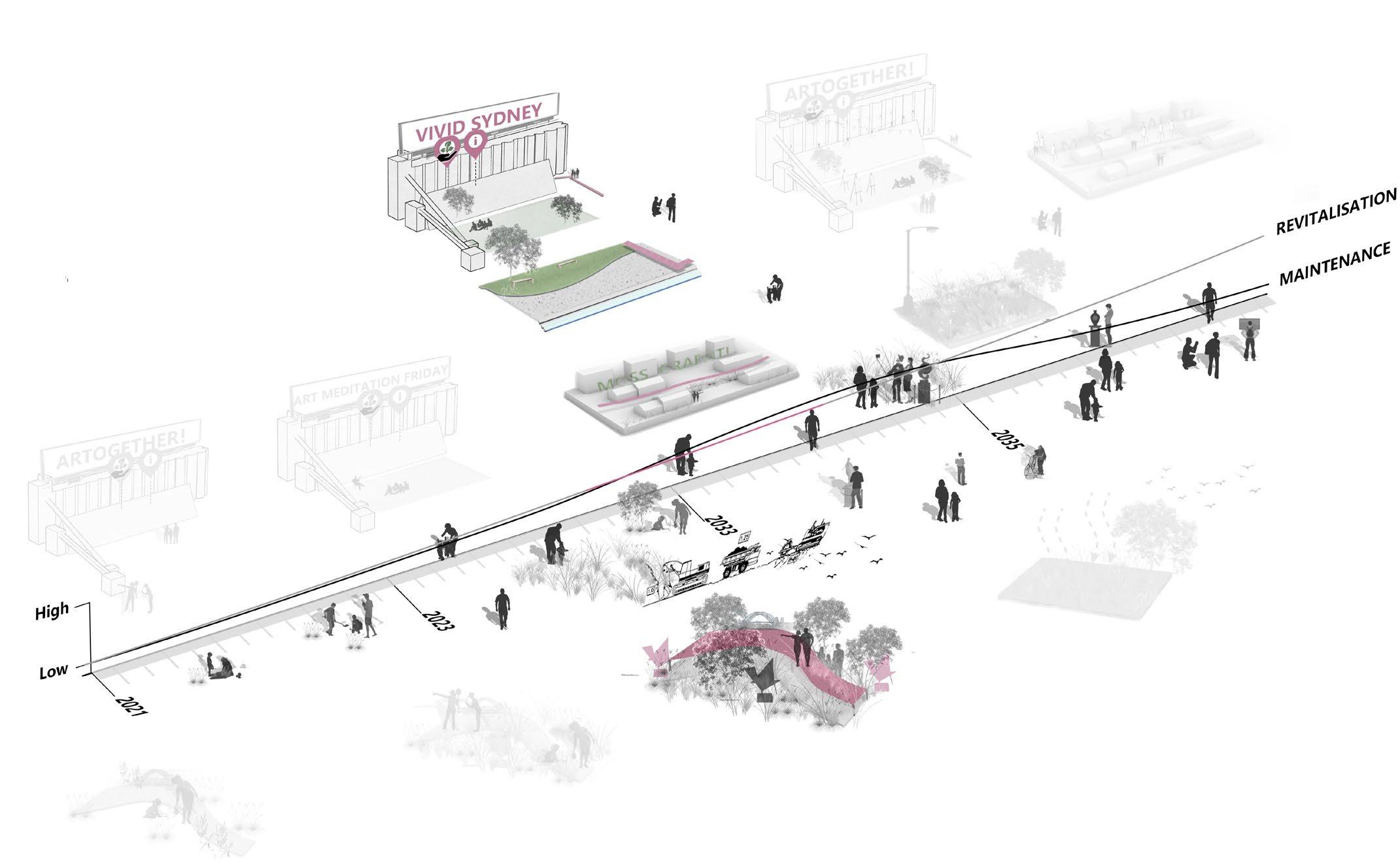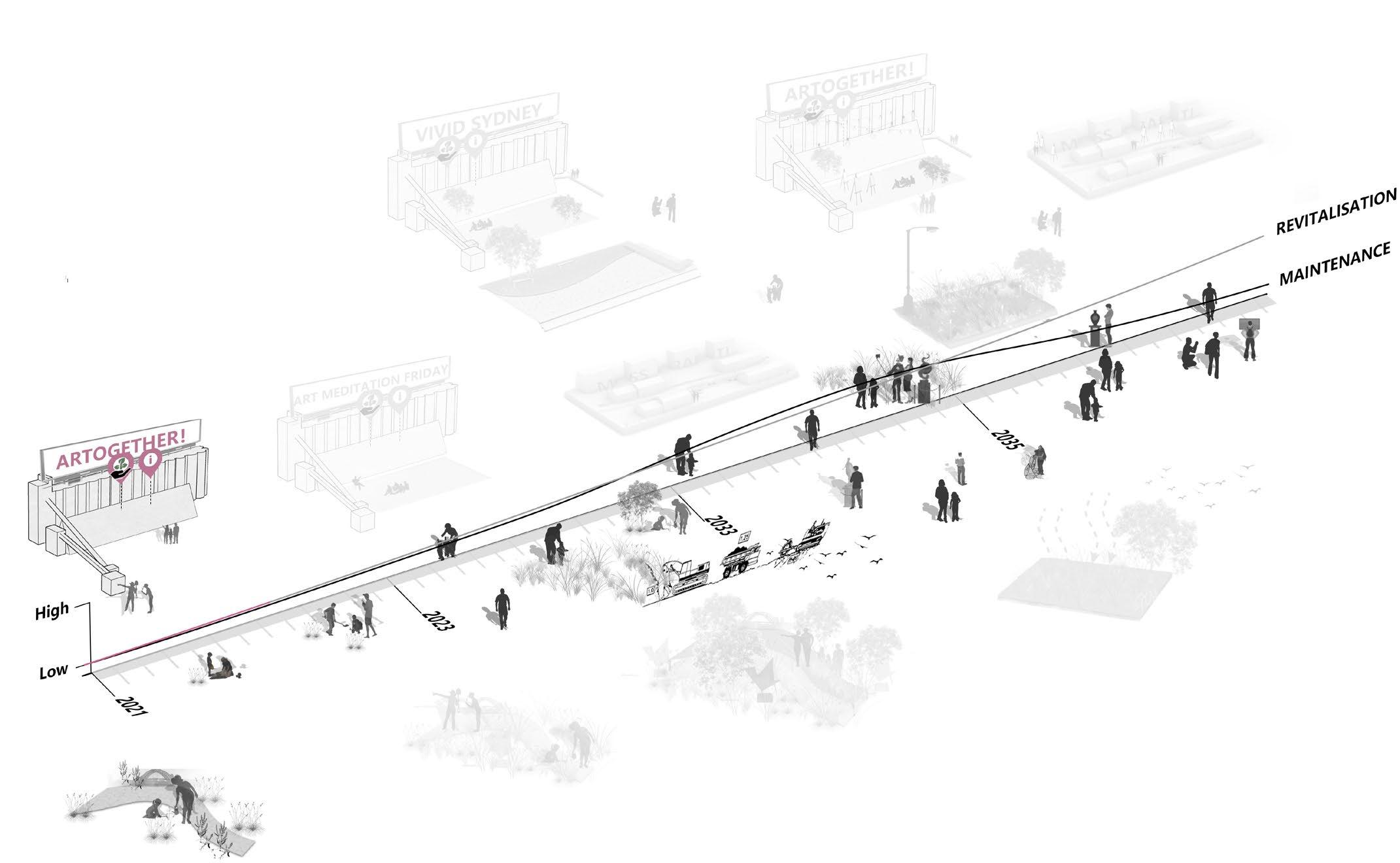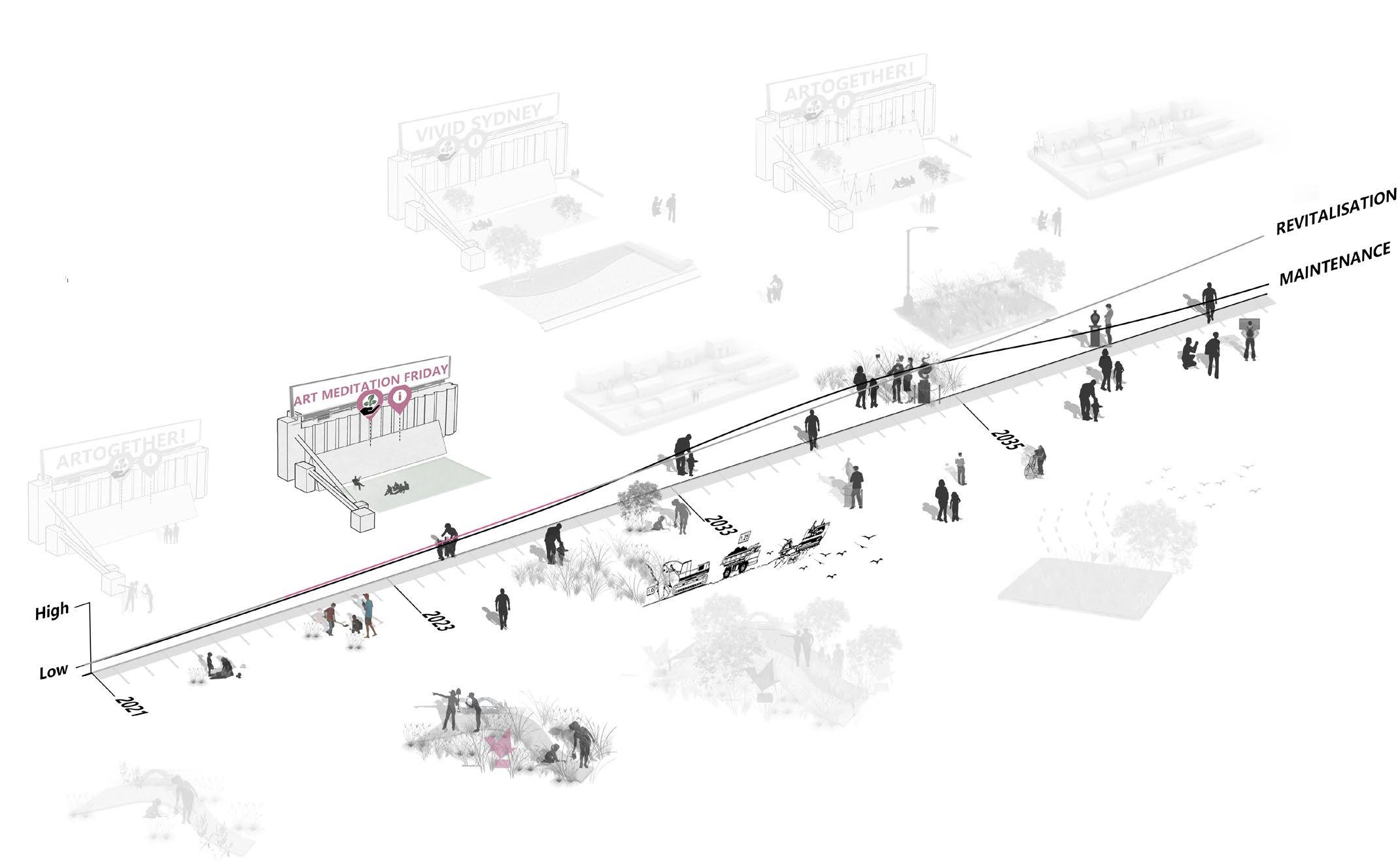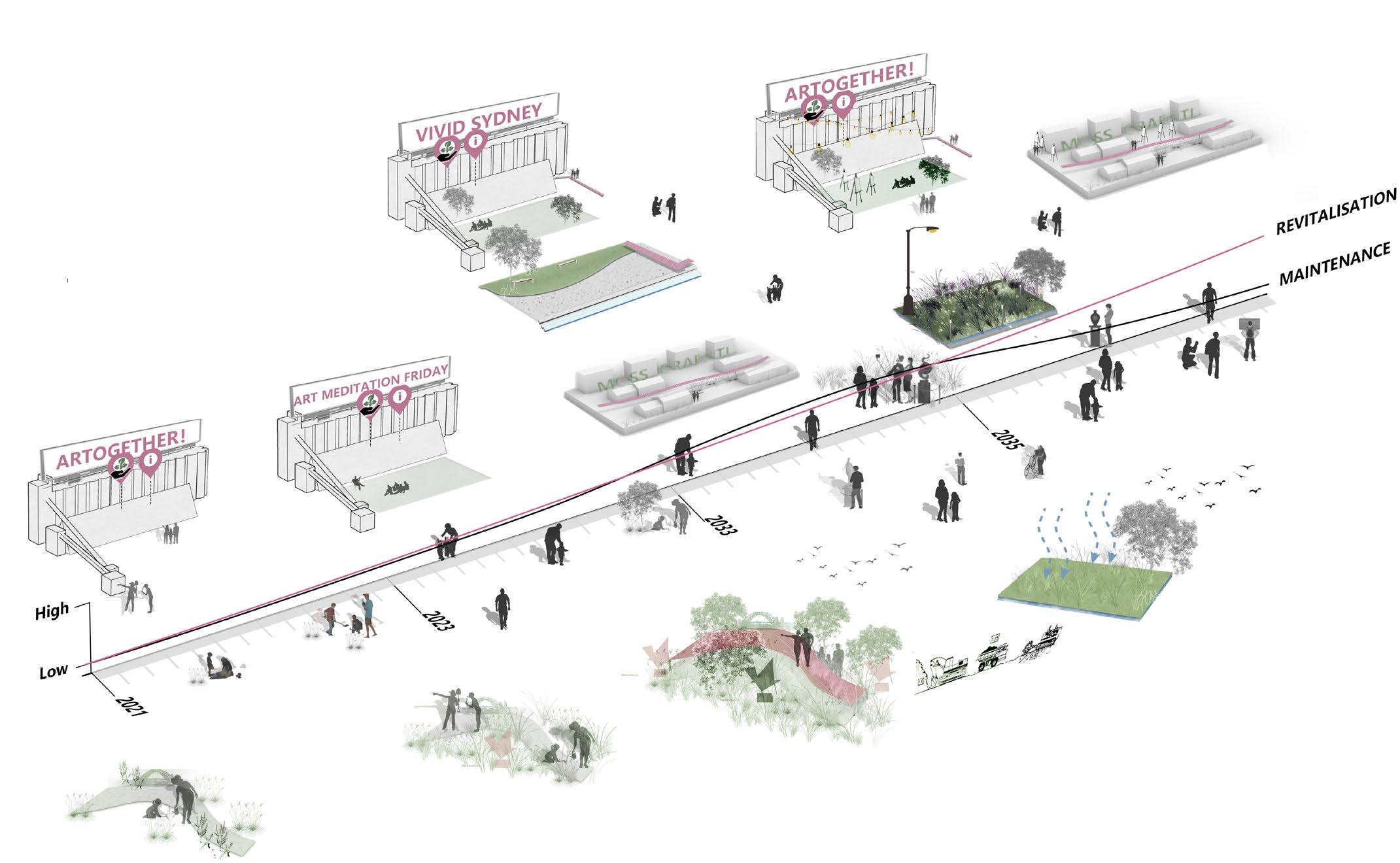 The rejuvenation of The Bays Precinct requires establishing a new foundation of identity and sense of place. The landscape architect will be committed to injecting art for attraction and encouraging people to lead Phytoremediation action.