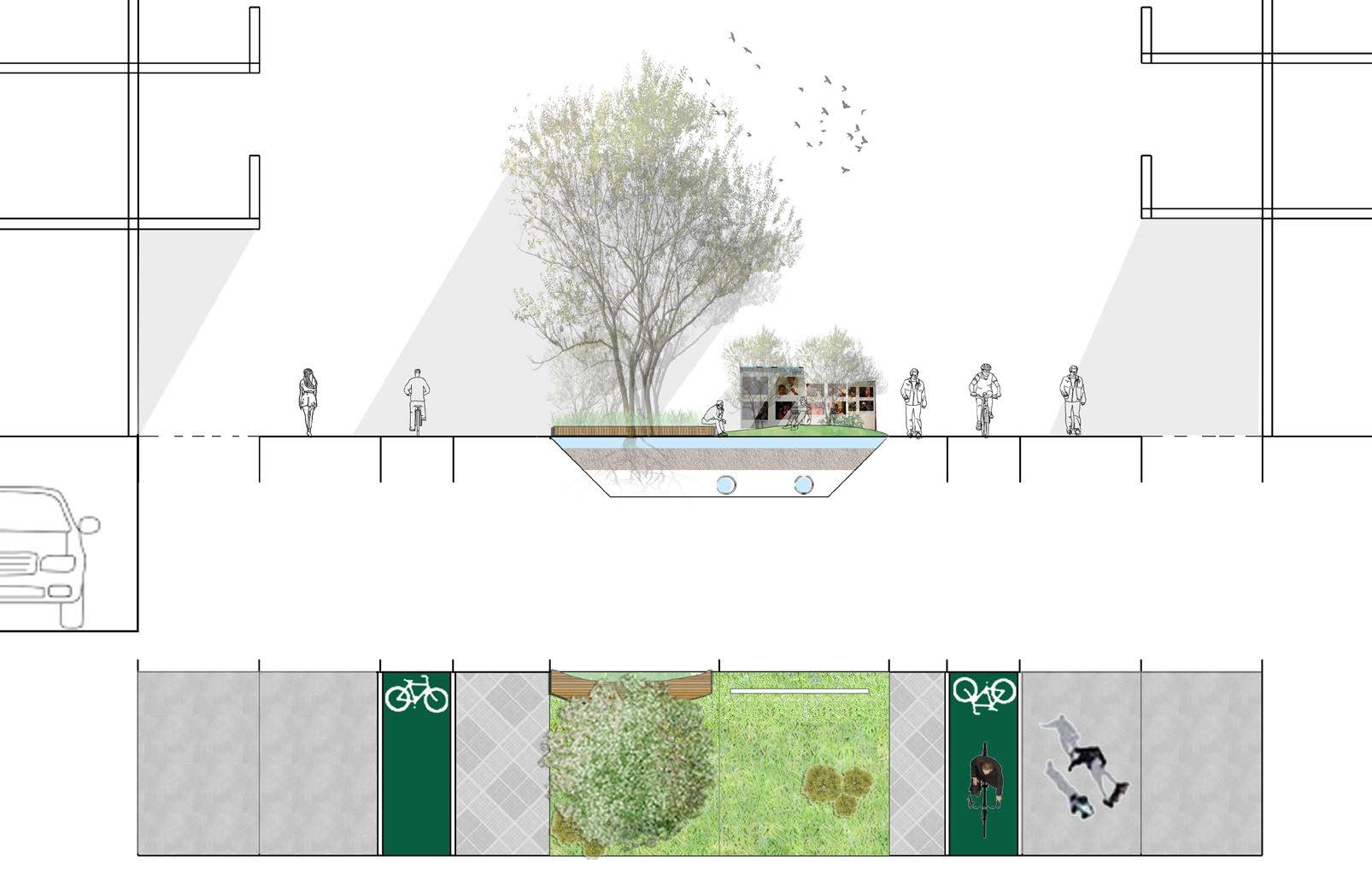 Phytore - mediation Trees Water Sensitive Urban Design New Waterfront Promenade -Free Moss Graffiti Zone -Plan 1/3 Affordble Apartments above Retails