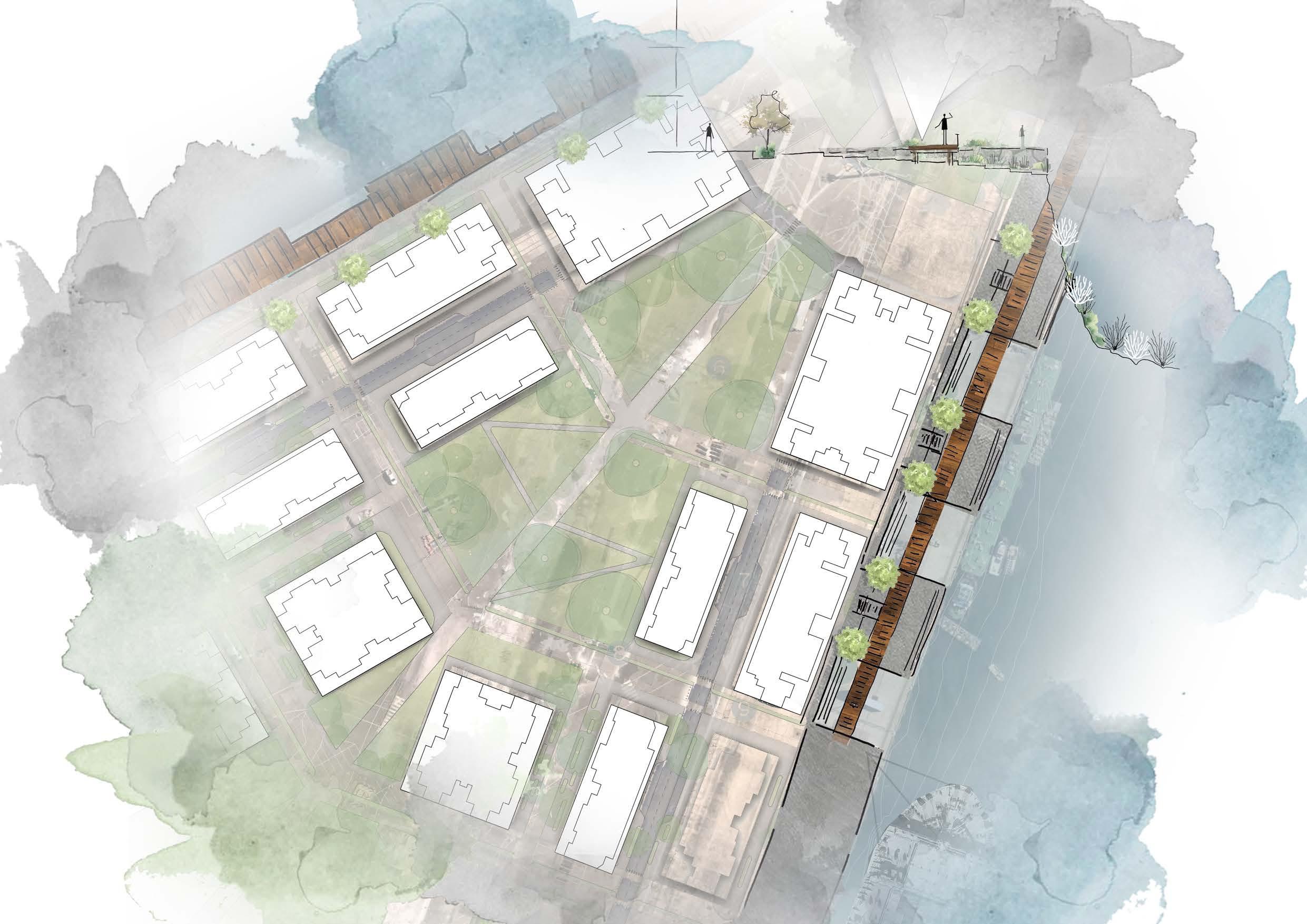 polluted runoff through implementing terrestrial and aquatic planting typologies that capture and filter