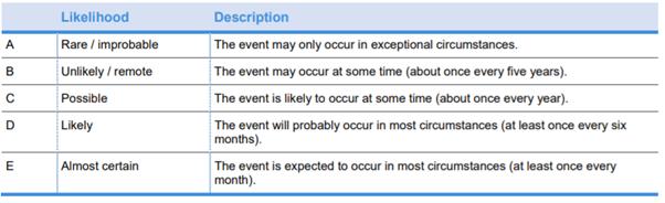 To gaugetheprobabilityversustheseverityoftheriskacommontoolknownasa risk matrix is utilised This aids in the process of managing the risks and their associatedhazards Thetablebelowprovidesanexampleofariskmatrix