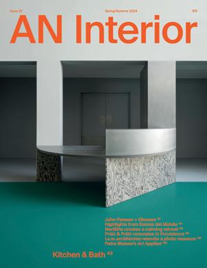 Issue 25 Spring/Summer2024. AN Interior is published twice a year as part of The Architect’s Newspaper (ISSN 2476-1532), which is published 7 times a year by The Architect’s Newspaper, LLC, 25 Park Place, Floor 2, New York, NY 10007. Presort-standard postage paid in New York, NY. Postmaster, send address change to: 25 Park Place, Floor 2, New York, NY 10007. For subscriber service: Tel. 212-966-0630. Fax