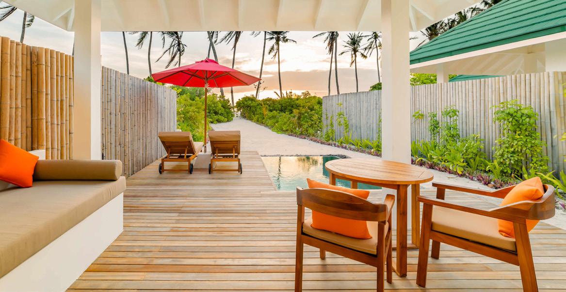 Potrete soggiornare in una delle cinque tipologie di ville offerte, tutte do tate di comfort come Wi-Fi gratuito, TV a schermo piatto con segnale satellitare, asciugacapelli, cassaforte e macchina per caffè espresso. La maggior parte di esse dispone anche di una piscina pri vata che garantisce magici momenti di relax nel paradiso delle Maldive.