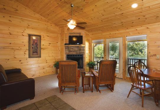 The spacious cabins, which can accommodate small groups or large parties up to 52 guests, feature native rock fireplaces, outdoor fire pits, charcoal grills, full kitchens, linens, flat-screen TVs with satellite reception (including SEC and ESPN channels), Wi-Fi and heating/air conditioning.