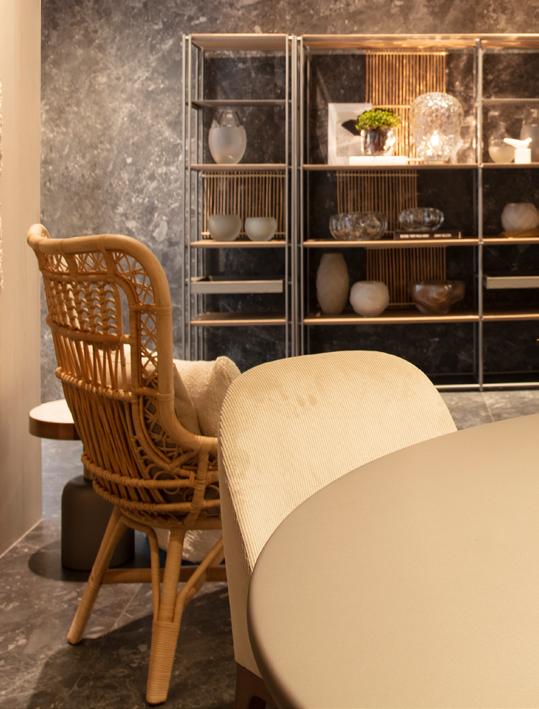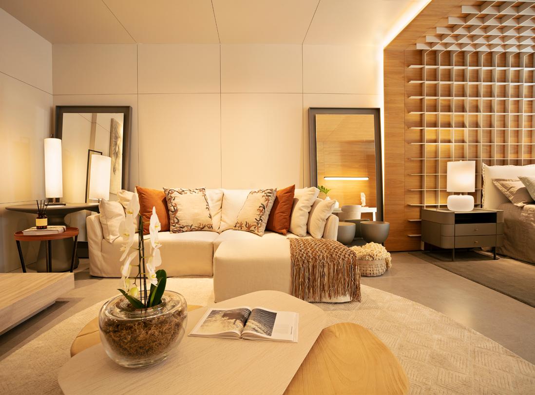 O escritório da família Ebrahim nasceu nos anos 80, na capital pernam bucana, partindo de um sonho de realizar e encantar clientes em seus lares. Hoje consolidado k cone sul do Brasil, soma projetos residenciais e comerciais em Cascavel, Foz do Iguaçu, Nova Aurora, Toledo, Curitiba, Balneário Camboriú, Itapema, Florianópolis, Miami, Los Angeles, Líbano, Paraguai e Austrália. Para esta primeira edição da Mostra Artefacto Flo ripa, o escritório preparou um ambiente de 125 metros quadrados, com posto por living gourmet com uma atmosfera fluida e aconchegante. “Neste ano o tema veio como uma composição, juntando nossa paixão por elementos naturais, um novo espaço amplo e aberto, com lança mentos de móveis orgânicos, possibilitando colocar a natureza dentro desse espaço”, explica o trio. Para Camila, a Artefacto é “uma empresa que está sempre à frente, que une a exigência de conforto do mercado americano com a exigência do mercado italiano, resultando em pro dutos que fazem toda diferença na finalização de cada projeto. Uma marca que se destaca pela qualidade, design e conforto”.