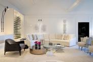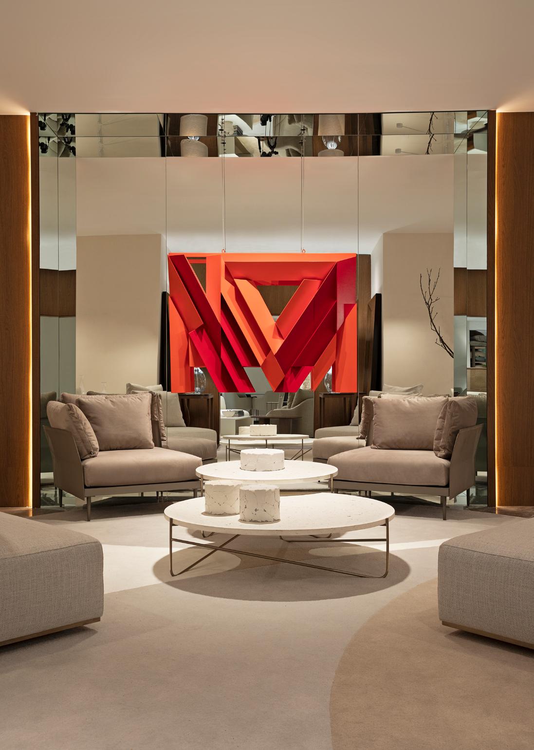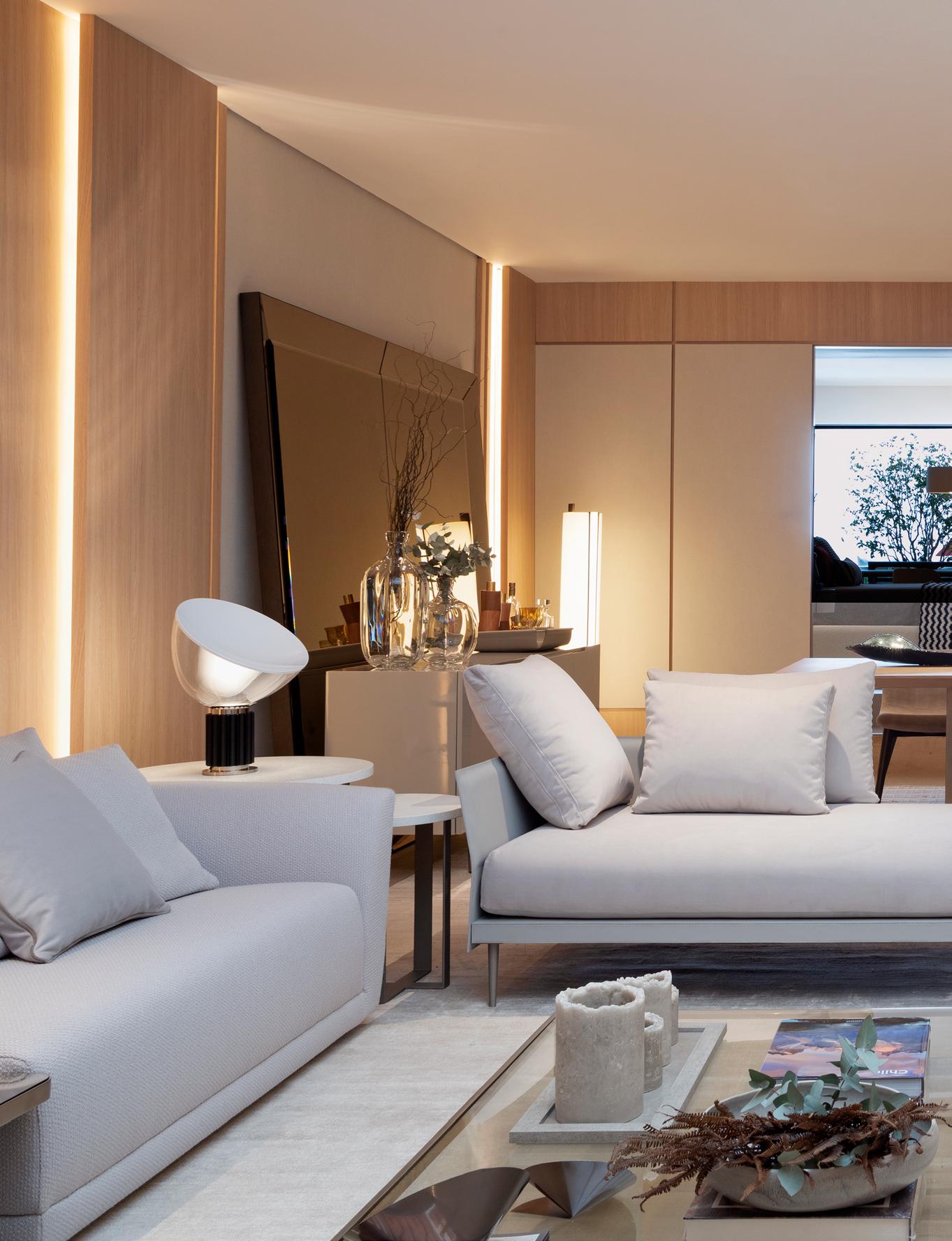 Poltrona Poline, mesas de centro Oro e Mai, mesas laterais Croma e Louise, sofá Argand, poltronas Pol