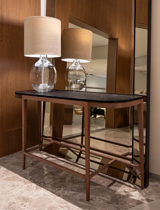 A dupla estreia na Mostra Artefacto com um loft de 75 metros quadra dos, num projeto dividido em sala de jantar, sala de estar e dormitório – todos integrados. “Acreditamos que o que se destaca no ambiente, juntamente com os produtos da Artefacto, é a mistura de elementos, revestimentos, texturas. Buscamos criar um espaço acolhedor, acon chegante, que traga sensação de bem estar e que tenha cara de casa’, explicam. Para Alfonso e Cassiana, “a Artefacto surpreende nos aca bamentos impecáveis, no desenho do mobiliário, no conceito, design e sofisticação. A qualidade dos produtos abrilhanta ainda mais os proje tos, fazendo da marca um objeto de desejo. A excelência da Artefacto é vista em todas as etapas, desde o primeiro contato no atendimento até a entrega do produto final na casa do cliente. É uma marca referência em termos de luxo e sofisticação”.