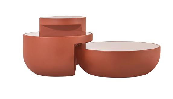 Mesas laterais Branti, poltronas Zazah, mesas componíveis Sindhu, bancos Kalao e Kawe