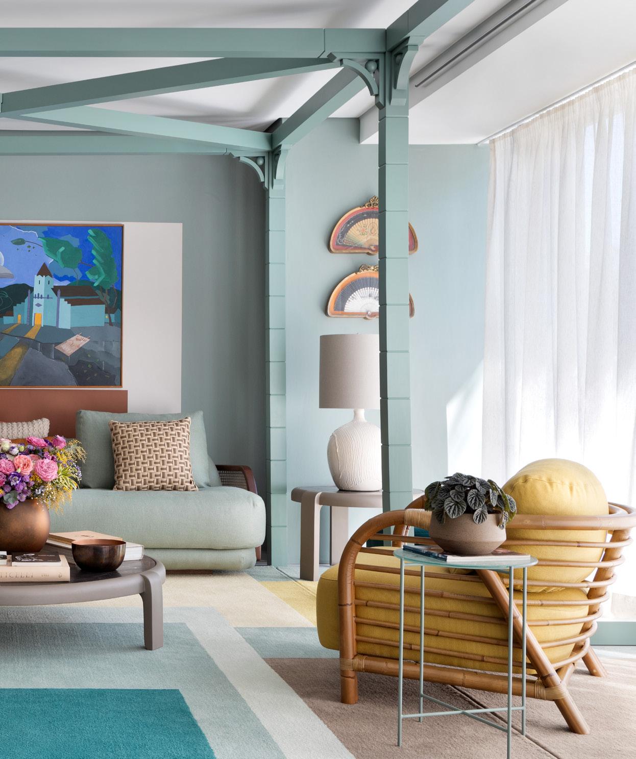 Mariú Sabóia e Irineo Albiero Filho complementam suas expertises com especializações em design de interiores e produto pela Parsons NY. Seu estúdio foca em espaços fluidos, confortáveis e estéticos. Assim, o tema “Viver com Arte” se concretiza no “Loft do Colecionador”, um ambiente completo e acolhedor como residência vivida, onde móveis Beach & Country dialogam com obras selecionadas, vegetação natural e texturas sensoriais. A arte ocupa lugar central em suas vidas – visuais, música, teatro, cinema –, com Irineo como artista visual contribuindo com obras de sua própria autoria. O processo criativo partiu do desejo de uma “casa com alma”, com camadas visuais e materiais texturizados conectados à natureza, como a poltrona Crandon e paleta neutra com toques verdes. “É tudo sobre sensibilidade estética e integração orgânica”, resumem.