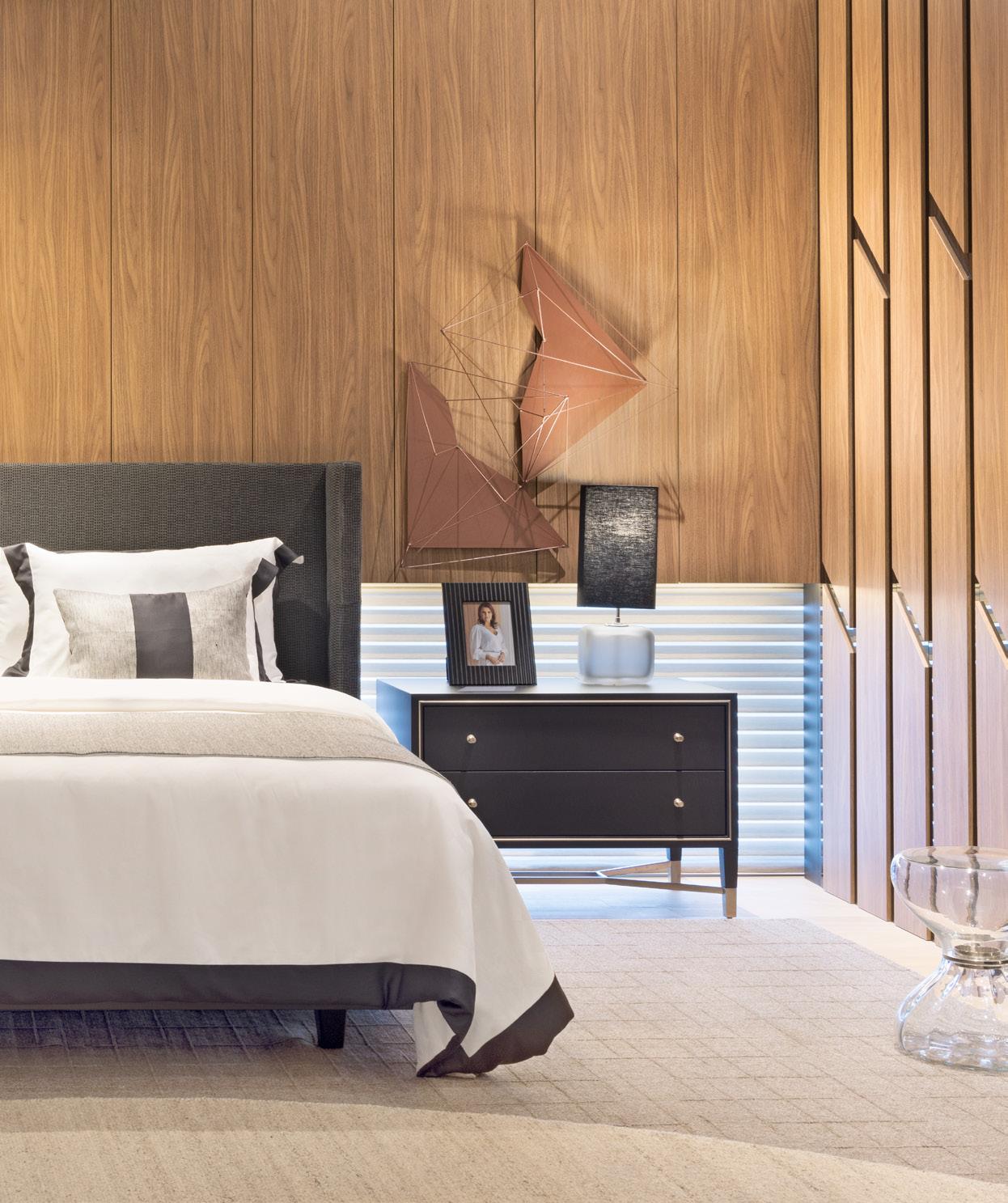 Bernardo Blasi Bahia e Marina Blasi Bahia unem forças em um escritório sensível à cultura, clima e meio ambiente. Para a Mostra 2025, “Viver com Arte” se manifesta em soluções arquitetônicas simples e elegantes que dão protagonismo à curadoria de mobiliário e obras de arte, sempre presentes em seus projetos. “A arte aprofunda a experiência espacial, reforçando personalidade e importância no dia a dia”, explicam. Os móveis Artefacto contribuem para materializar a visão com design atemporal e qualidade, integrando-se harmoniosamente ao todo. Materiais sofisticados – piso em madeira maciça, paredes lisas em granilite e a cama Tassel – criam um pano de fundo neutro que valoriza texturas e materialidade, com iluminação trabalhada para realçar volumes e percepções, potencializando a percepção sensorial em uma paleta equilibrada.
