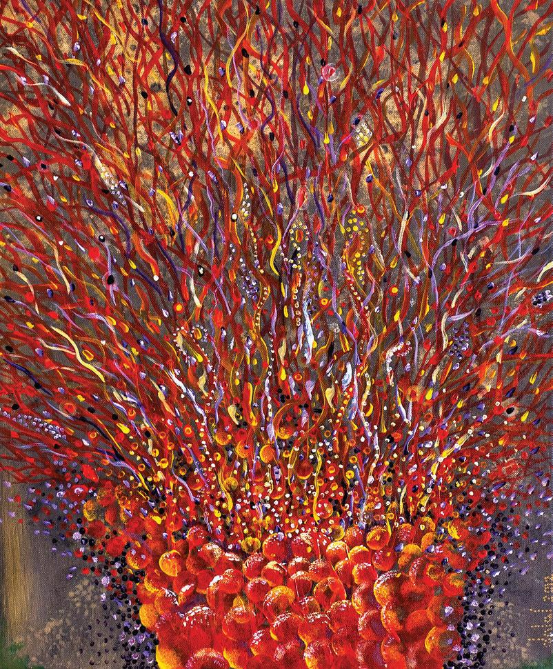 Abstract Poppies (top right) acrylic on paper 61 cm x 46 cm x .5 cm 2023