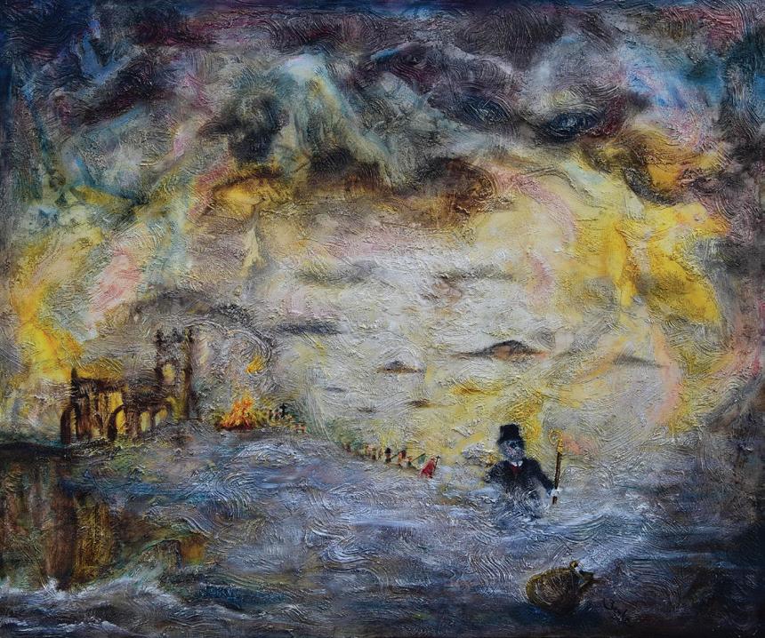 The Duel (bottom) mixed media 91.5 cm x 122 cm x 12 cm