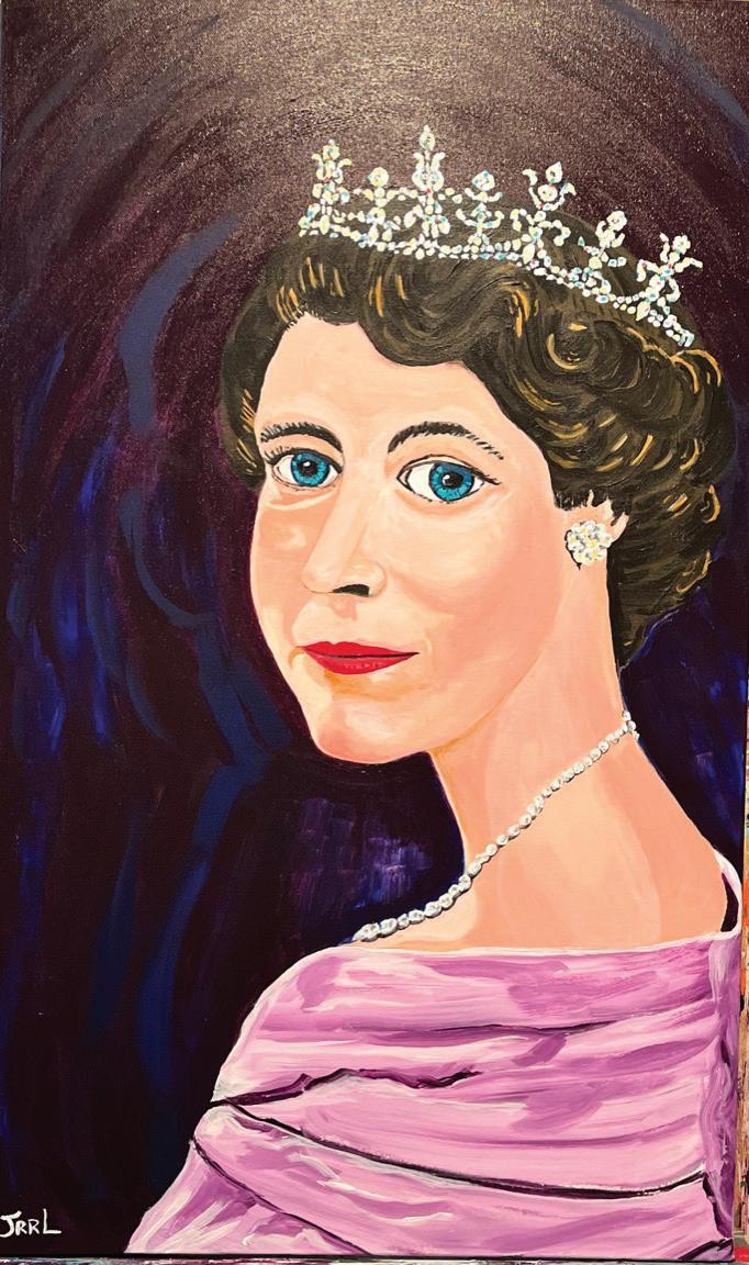 Queen Elizabeth II (top left) acrylic 76 cm x 46 cm x 4 cm 2023