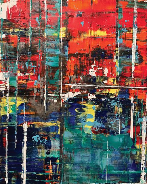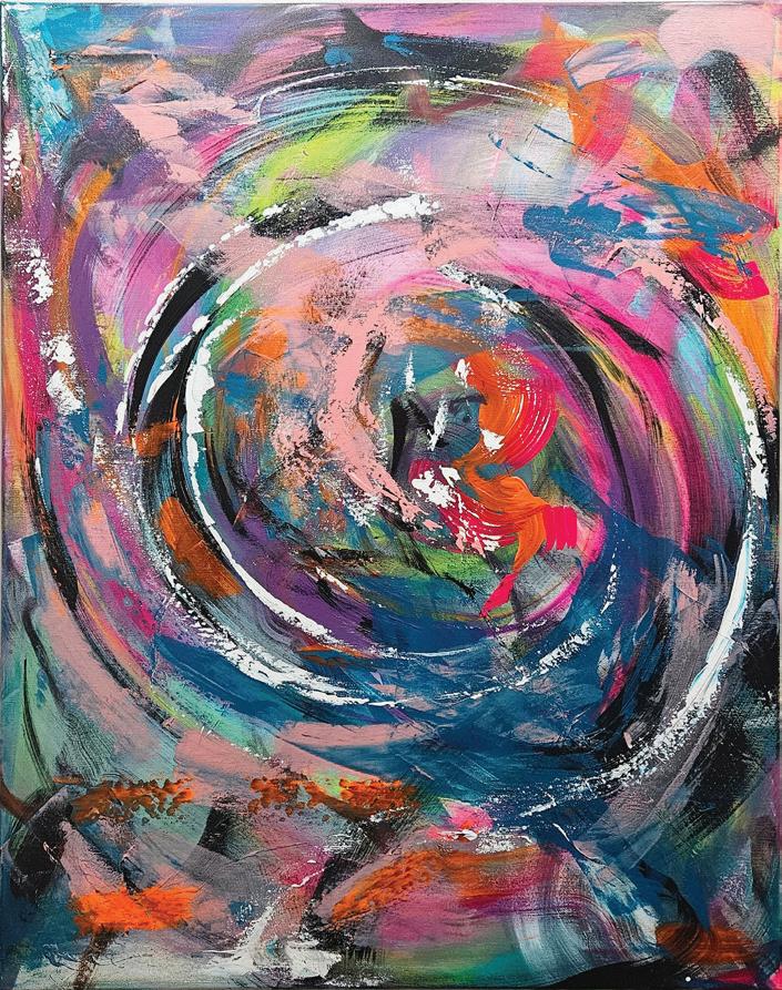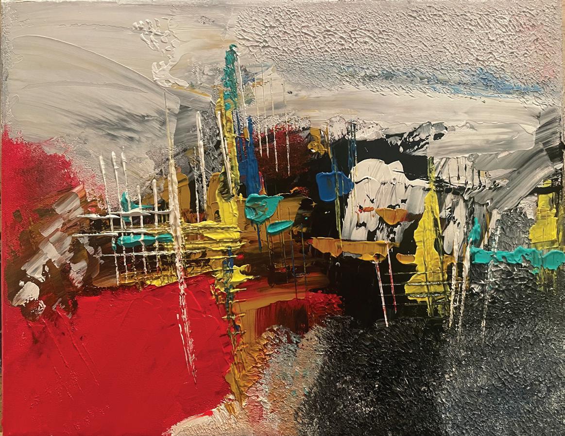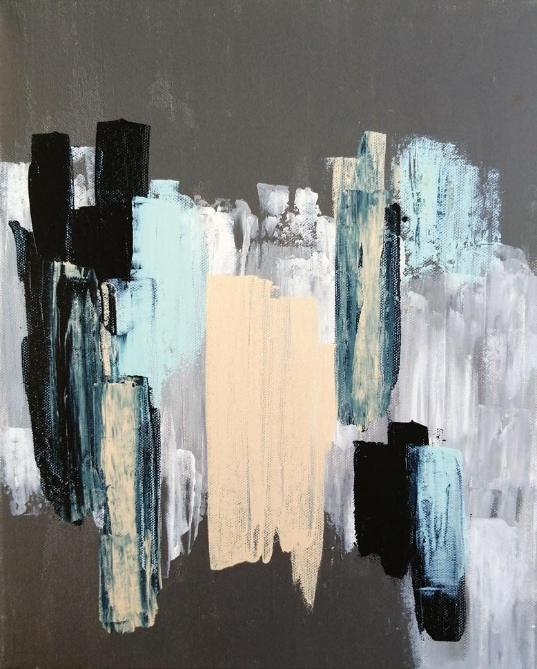 As an art director, working with teams of young designers gave me perspective on what I wanted to convey to the public but it didn’t satisfy the need to create in my way. I have found that satisfaction in abstract painting. My art is influenced by what’s going on in the world.