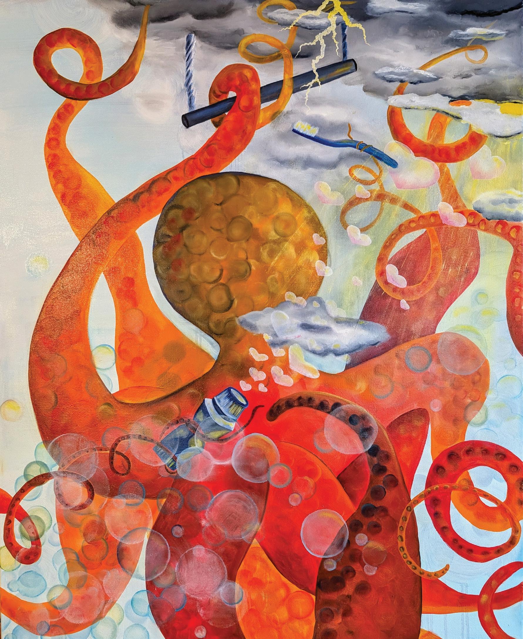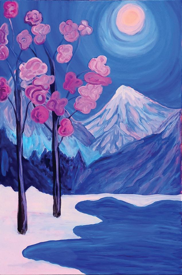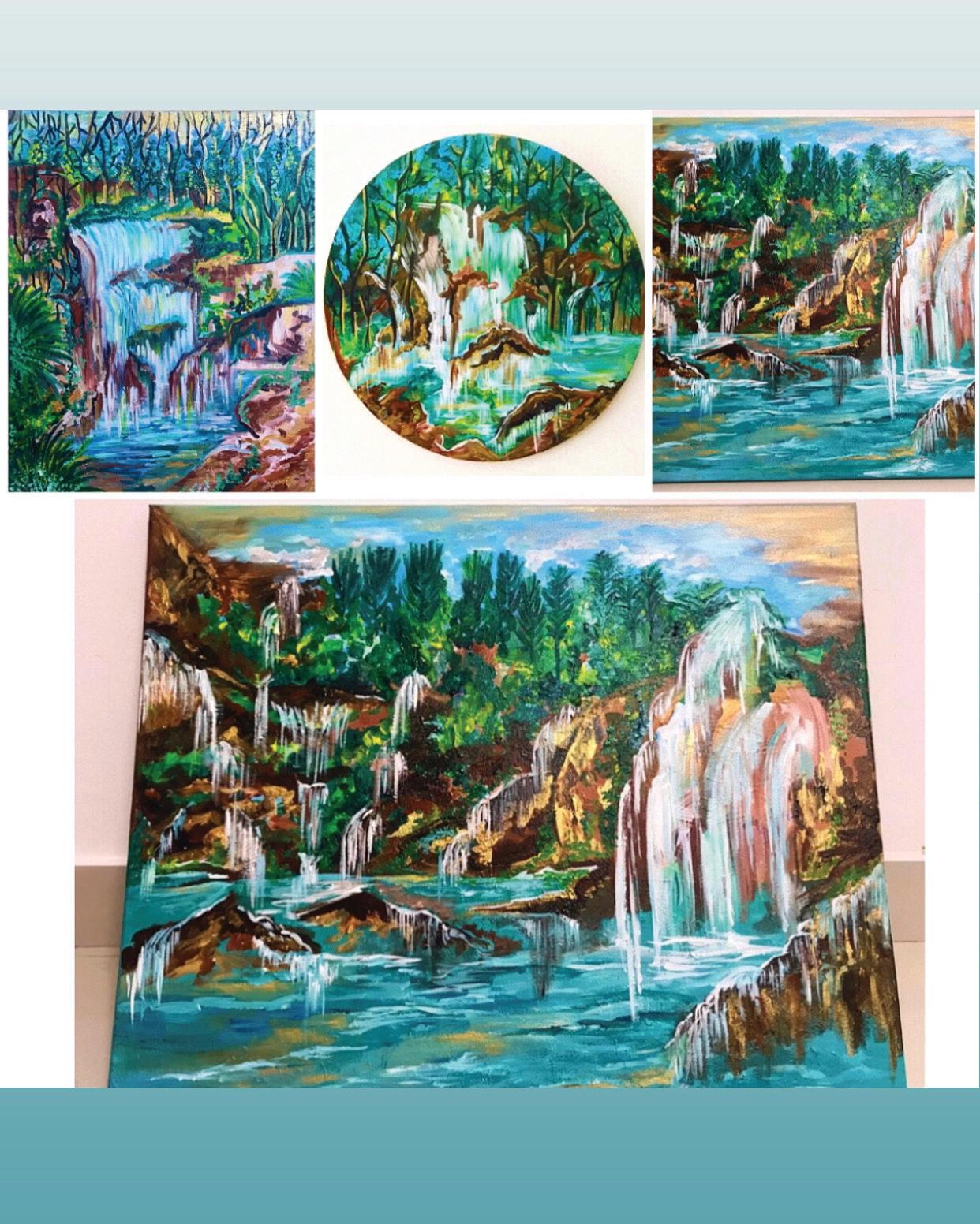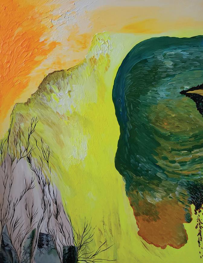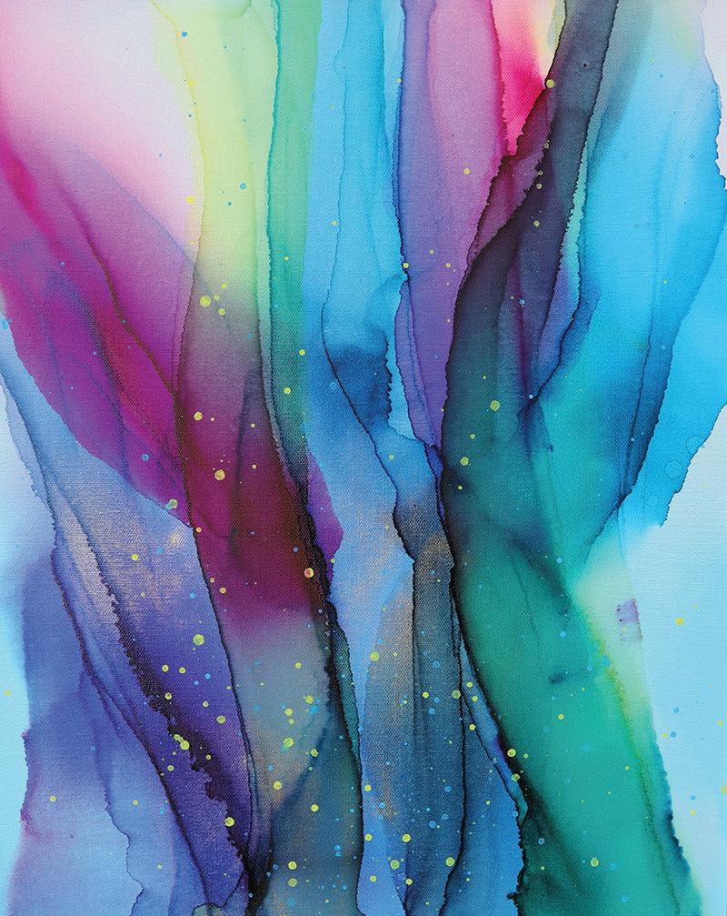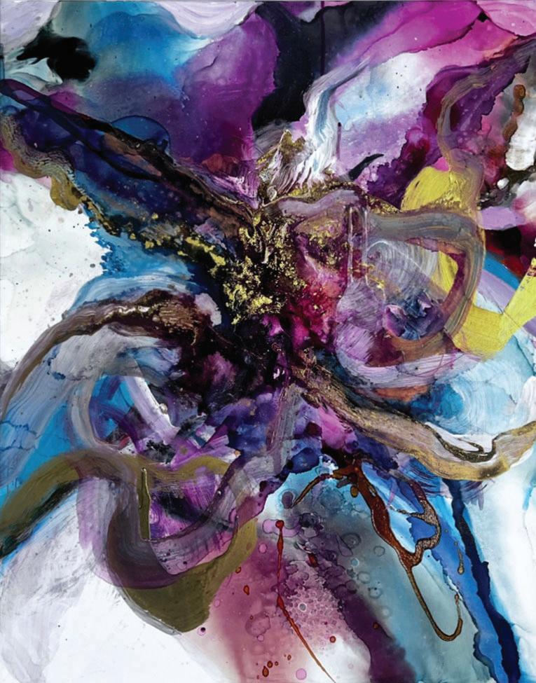 mixed media 61 cm x 46 cm 2023 Flames and Flow (top right) mixed media 61 cm x 46 cm 2023 Enchanted Suspension