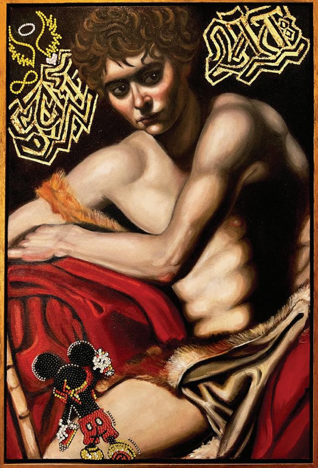 Michelangelo Spraying Caravaggio oil on canvas with acrylic & 24k gold floating baroque gold frame