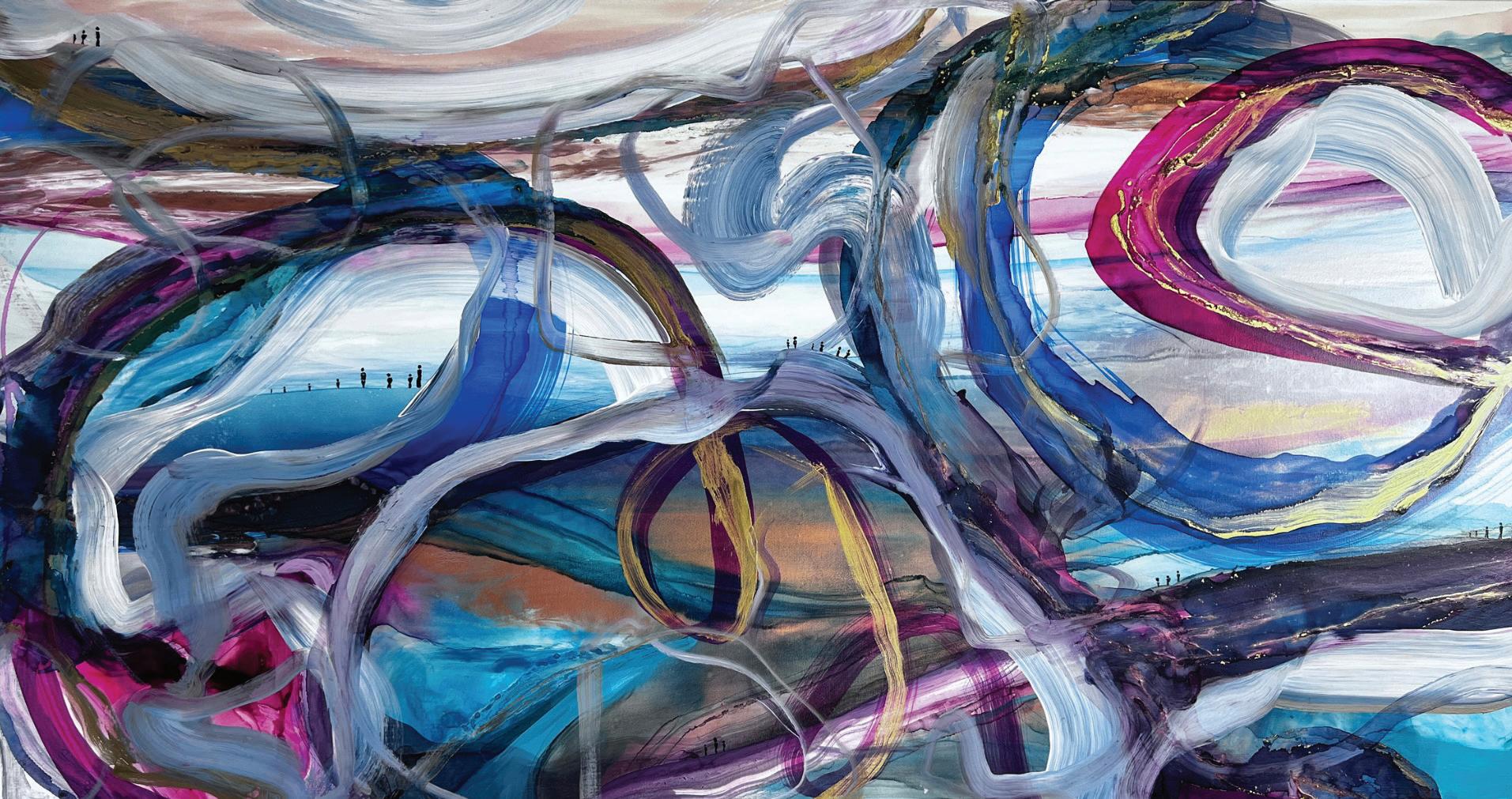 The creative world of Katie Meuser draws inspiration from the human form and its interaction with space. Her distinctive style blends expressionless figures with bold, sweeping color fields. Her vibrant abstract pieces are like a dance on canvas creating dynamic visual narratives. www.katiemeuser.com @klmeuser