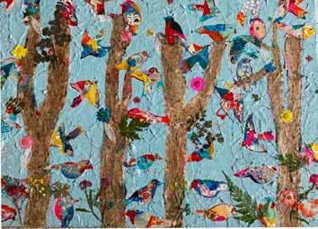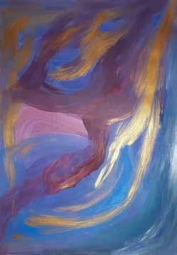 I’m a self taught abstract artist. I paint what ever inspires me on the day. I have a spontaneous and uninhibited painting style so my work is energetic and lively. I love using strong and powerful colours. Added collage pieces add quirkiness, depth and texture.