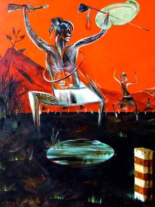 In my paintings, mostly surrealist, I combine figurative, often distorted objects, with pure abstract forms and textural components. They coexist beyond any physical or logical limits.