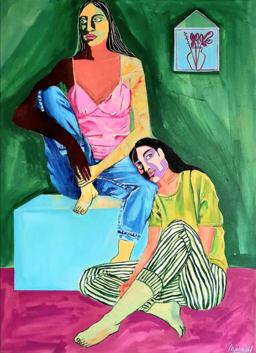 ‘WOMEN IN MESH’ ___ ACRYLIC ON CANVAS 45 X 60 CM $800 BUY NOW CLICK HERE TO SEE MORE OF ANAHITA’S WORK ‘ROSES IN DECEMBER’ ___ MIXED MEDIA ON CANVAS 45 X 60 CM $840 BUY NOW